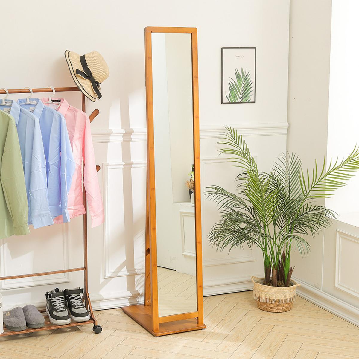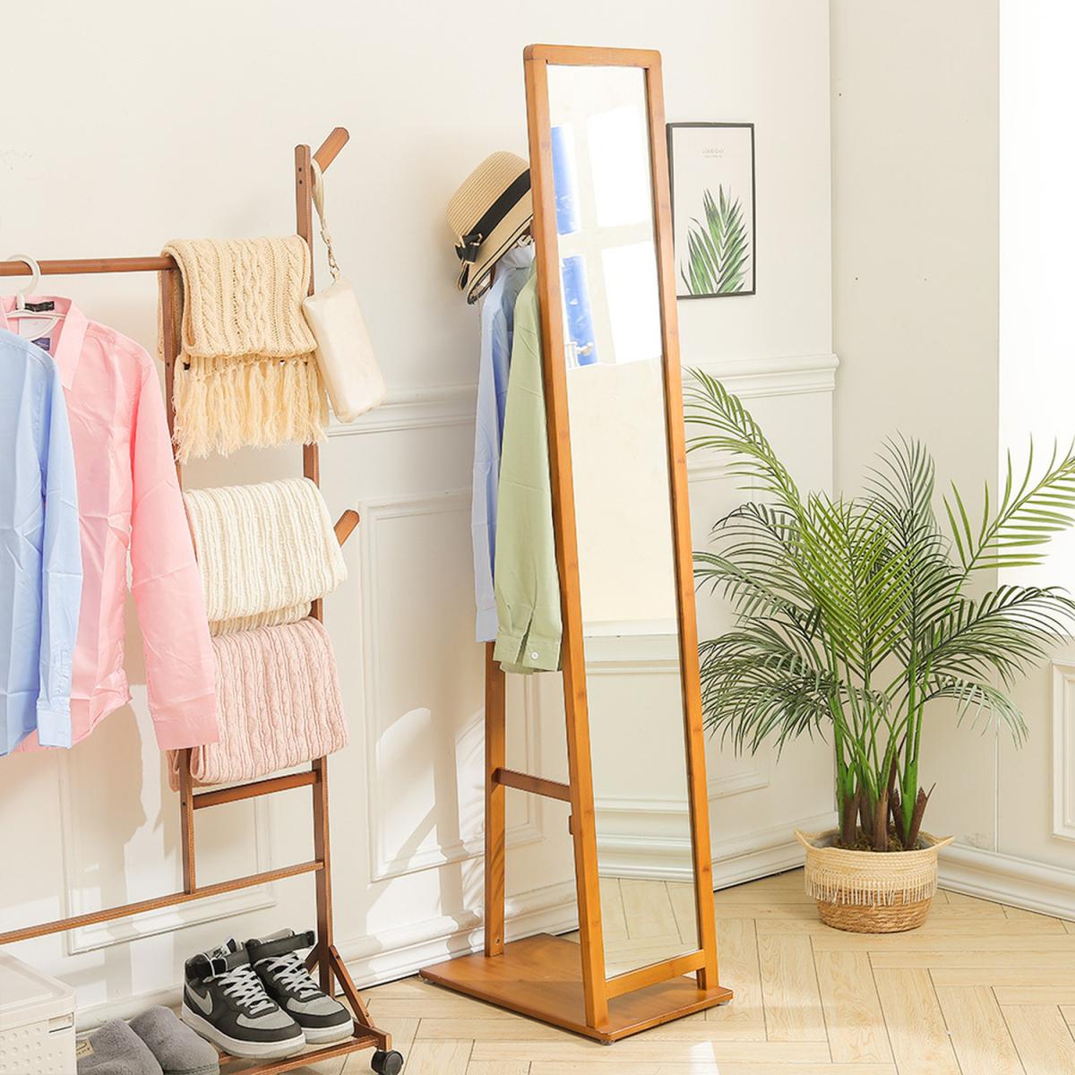 Make getting ready in the mornings effortless with this full length mirror. The frame is made from bamboo, so it is durable and sturdy. It is fitted with a large mirror for plenty of reflection, with a special protective coating to shield against cracks and chips. Equip with thickened bottom shelf and hook hanger backside, you could storage several shoes, coat or hat in this mirror shelf. Benefits from a layer of natural lacquer, protect the wood from light knocks and scratches, and it is is easy to clean, dust and keep stain-free. It will be an affordable choice to decorate your home, add lighting, and make your room more spacious.