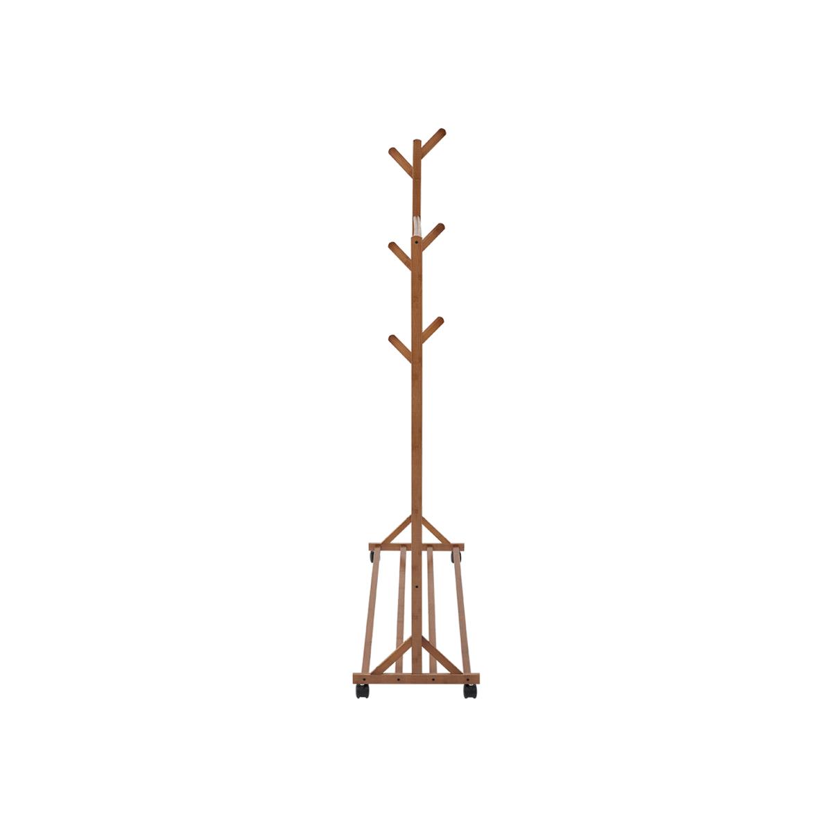 This adaptable garment rack serves as a convenient mobile cloakroom, bringing a warm, rustic touch to your home. Crafted from solid bamboo with a natural finish, it combines elegance with everyday practicality. Its generous width and height provide ample room for all kinds of clothing, from coats and shirts to trousers. Six side hooks offer additional storage for handbags, hats, and scarves, while the lower shelf keeps shoes and baskets neatly organised.