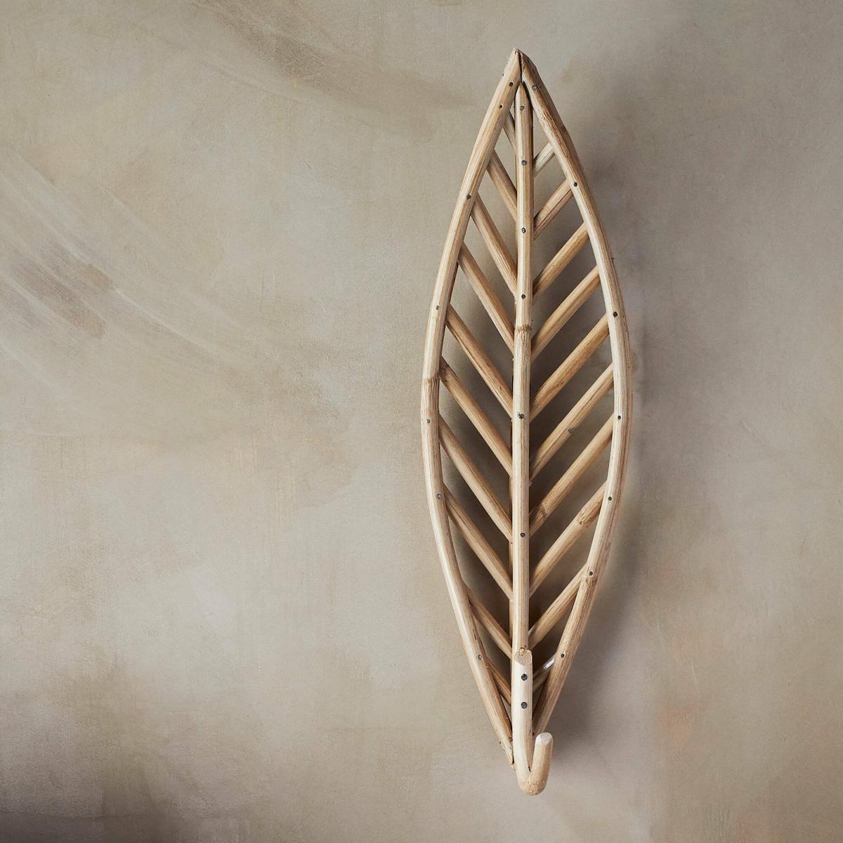 An organic leaf shape made from bamboo with a curved hook. Gather them in groups on the wall for a nature inspired interior.