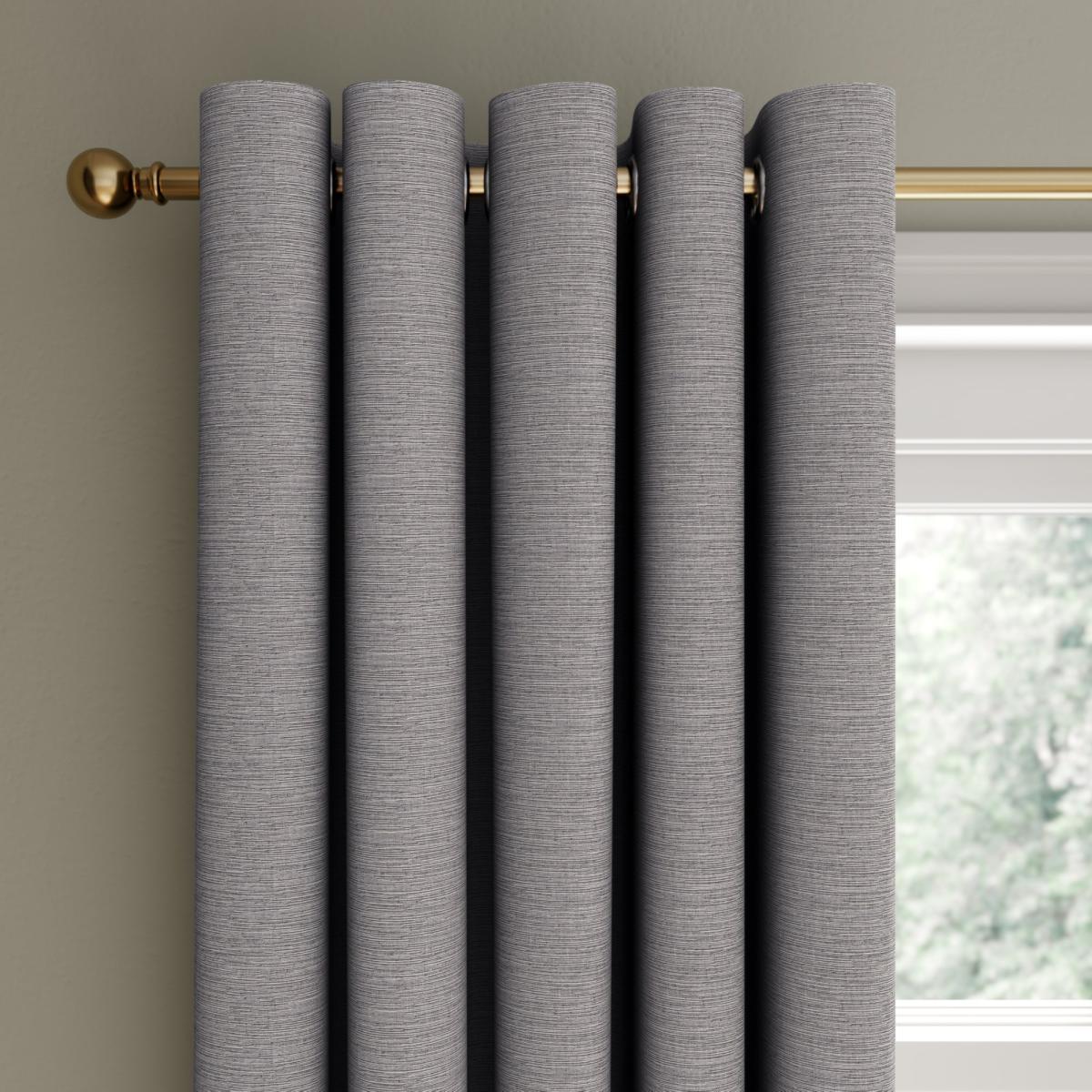 Decorate your windows with this mellow and uncomplicated pair of eyelet curtains in a simple monochrome colour. With a natural striped woven texture, this plain and minimal style of fabric will fit well into any space of the home. A mix of bamboo viscose and cotton creates a strong and unique textile structure and paired with the durable stainless-steel eyelet heading, creates a great shape and form for the curtains to hang. This pair of curtains comes in multiple size options and colourways, is fully lined and easy to install with the simple eyelet heading.