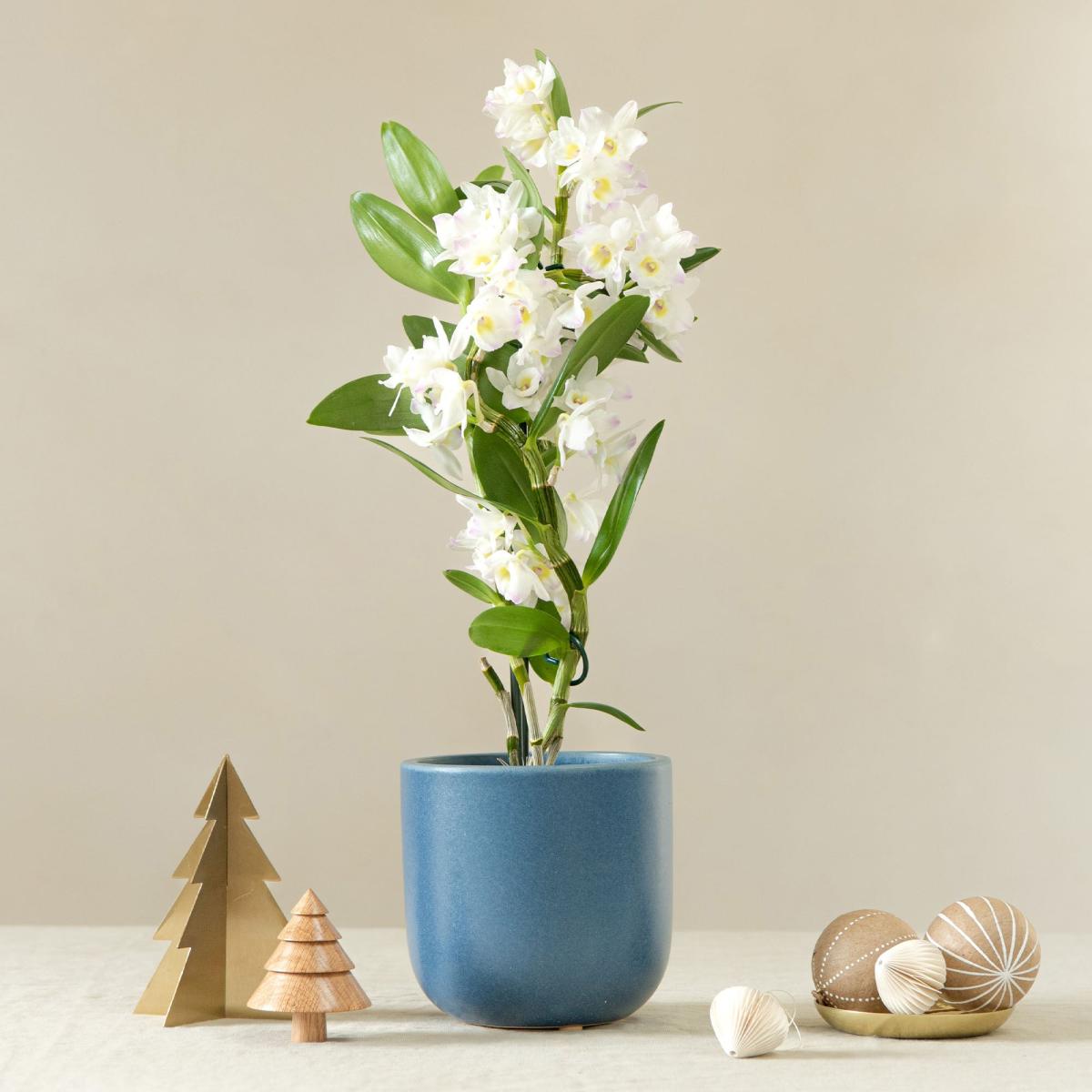 Have you ever seen such a beautiful plant? The tall, elegant Bamboo Orchid is a real showstopper. Combining the well-loved, delicate flowers of the Orchid with the distinctive, tall, thin stems of the Bamboo plant - this plant truly has it all! Native to Asia, this unusual Orchid can be found growing on rocks and trees. Surprisingly easy to care for, the Bamboo Orchid loves bright light, but be careful of any direct sunlight which can burn its beautiful leaves. Paired with a handmade, earthenware pot, this stylish duo will help elevate your room. How to keep me happy: Please note: As this is a living product your plant may vary to the one photographed. Plant height measurement includes the pot. Width measurement is for the width of the pot only; width of the plant may vary. Please note, unfortunately we cannot deliver this item to Northern Ireland or the Channel Islands.