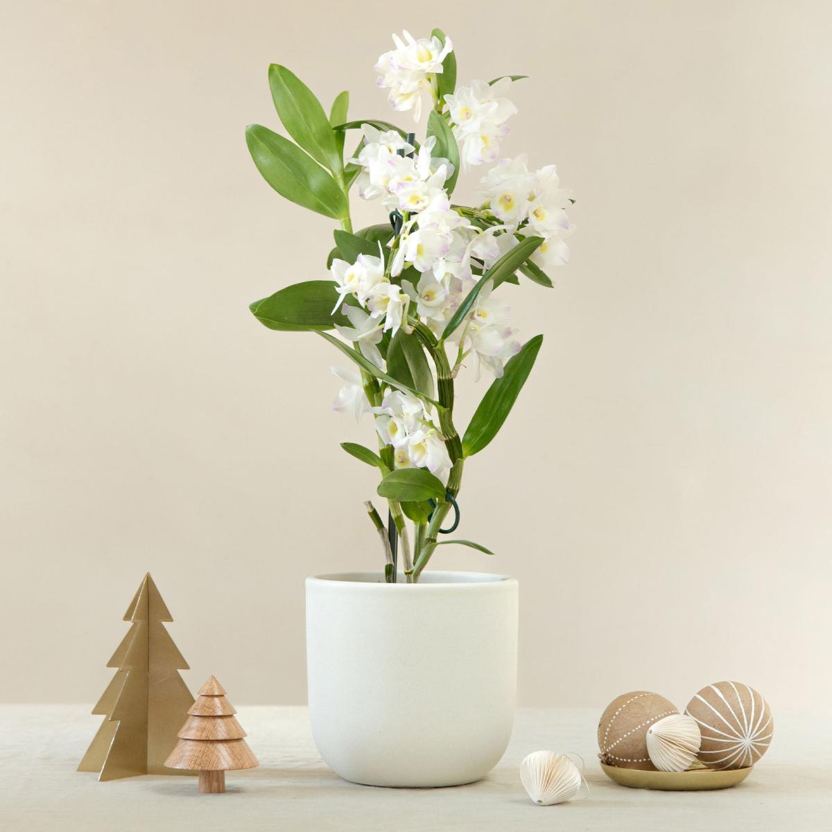 Have you ever seen such a beautiful plant? The tall, elegant Bamboo Orchid is a real showstopper. Combining the well-loved, delicate flowers of the Orchid with the distinctive, tall, thin stems of the Bamboo plant - this plant truly has it all! Native to Asia, this unusual Orchid can be found growing on rocks and trees. Surprisingly easy to care for, the Bamboo Orchid loves bright light, but be careful of any direct sunlight which can burn its beautiful leaves. Paired with a handmade, earthenware pot, this stylish duo will help elevate your room. How to keep me happy: Please note: As this is a living product your plant may vary to the one photographed. Plant height measurement includes the pot. Width measurement is for the width of the pot only; width of the plant may vary. Please note, unfortunately we cannot deliver this item to Northern Ireland or the Channel Islands.