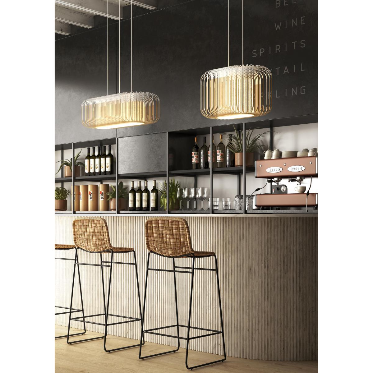 Bamboo Oval Pendant - / Small - 55 x 38 x H 33 cm by Forestier White/Natural wood