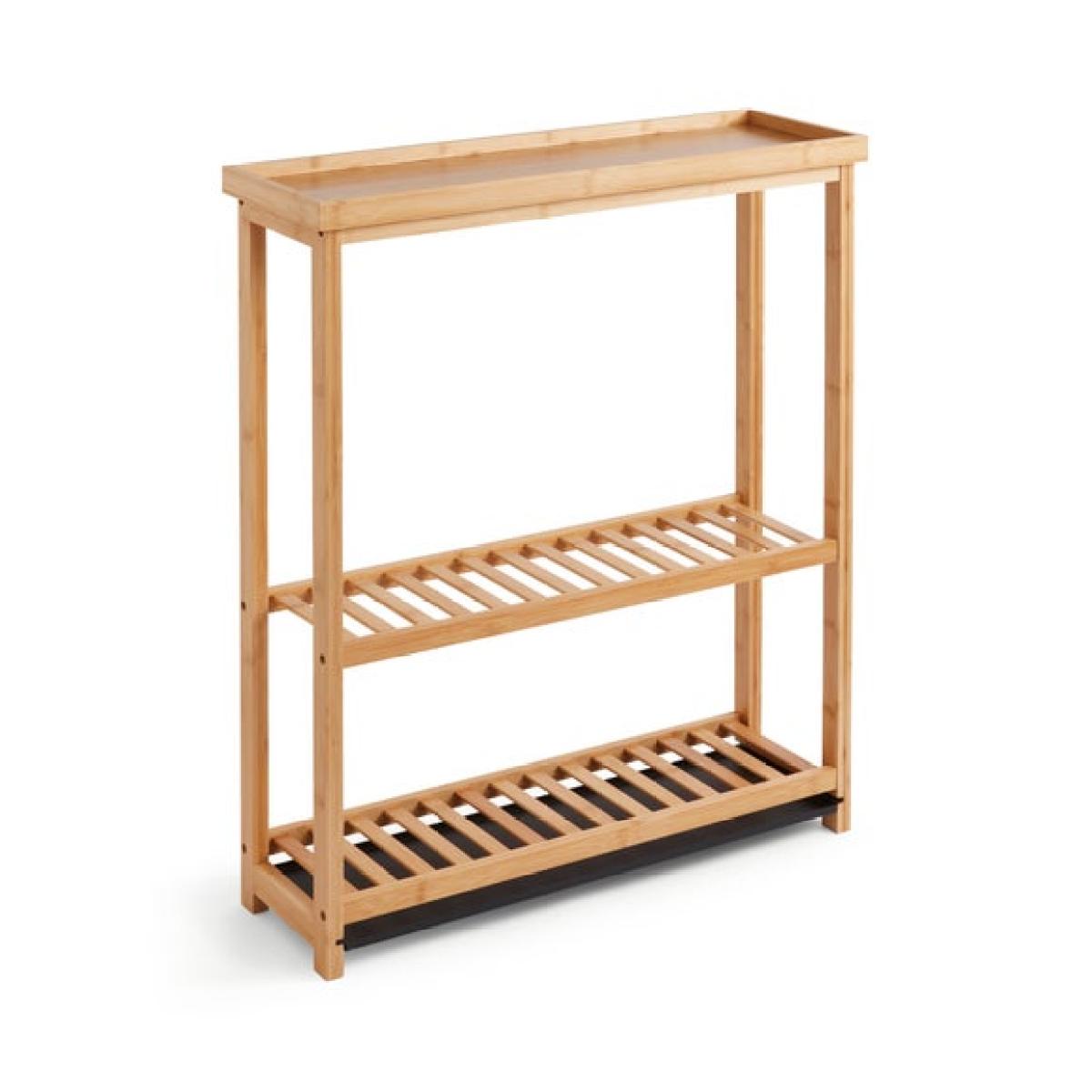 * Crafted from natural Bamboo * Available in two colourways * Space saving shape Keep your hallway calm and collected with our Bamboo Shoe Rack with Table, a clever blend of style and storage. With its chic, minimalist design, it's a natural fit for mdoern homes. The top table adds an extra perch for post, keys or a lovely little houseplant to spruce up your entryway. It's space saving shape means even compact corners can feel tidy and well dressed. Available in two colourways, so you can match it to your decor or switch things up. Fuss-free functionality with a stylish twist.