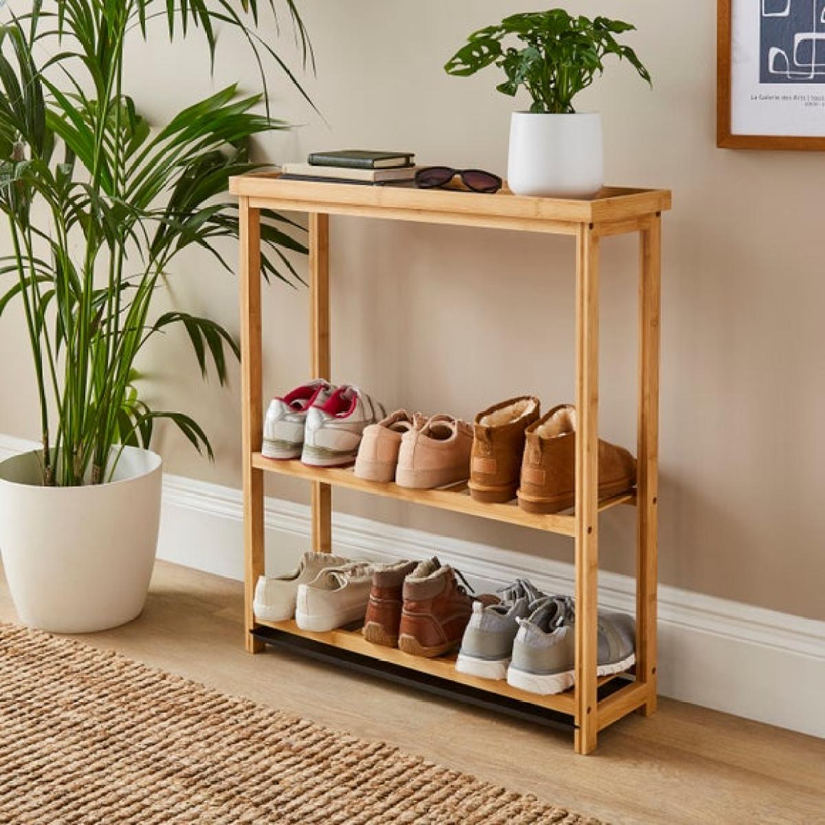 I really like this shoe rack with a table because of its versatile and functional design. Its natural bamboo finish makes it a great fit for both modern and rustic interiors, adding warmth and texture without feeling overpowering. It’s perfect for foyers or entryways where you need to stay organised but want to keep the space looking neat. Practical styling tips include keeping the top surface free for keys, mail, or decorative accents like a small plant or a tray, while the shelves neatly accommodate multiple pairs of footwear. To make it work in your space, pair it with other natural materials or add colourful shoes for a quick pop of colour. It’s a simple yet stylish way to keep clutter at bay while elevating your interior.