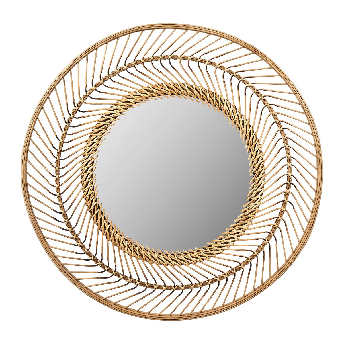 Bamboo Small Round Wall Mirror, 70cm Brown