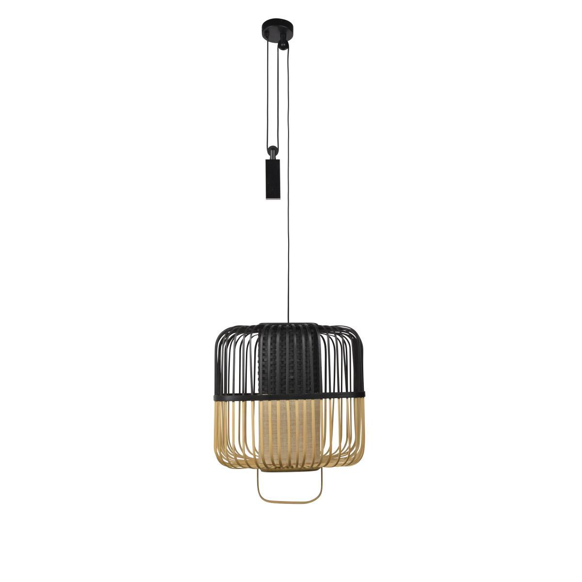 Created by designer Arik Levy, the Bamboo lamp collection skilfully mixes natural materials and contemporary design in a zen spirit that’s both refined and very current. Bamboo Square lights stand out for their two-tone shade made of bamboo strips, which project delicate shadows onto the walls. The diffuser, also made of bamboo, has a section woven in a natural colour, and a braided section. The light is thus filtered, for a warm, soft effect. The square shape of the shade adds a contemporary dimension to this lamp. Very practical, the lampshade is height-adjustable using a pulley system.