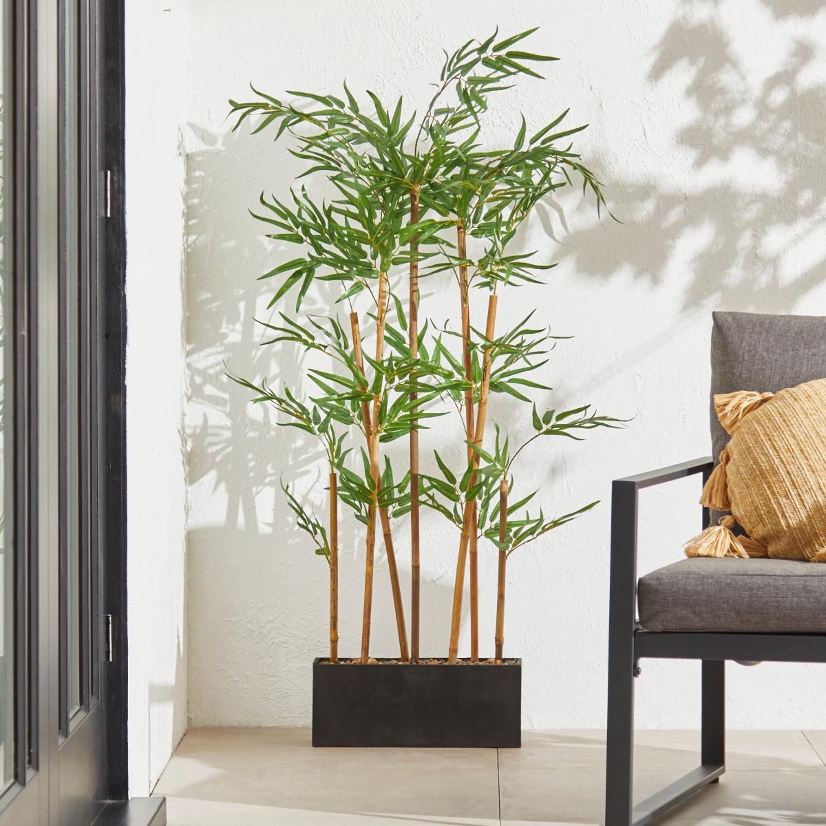 Our potted Trellis divider features a beautiful bamboo artificial plant display. This trellis is crafted with artificial bamboo leaves and a black wooden base that requires no maintenance. This piece comes fully assembled and ideal for outdoor spaces.