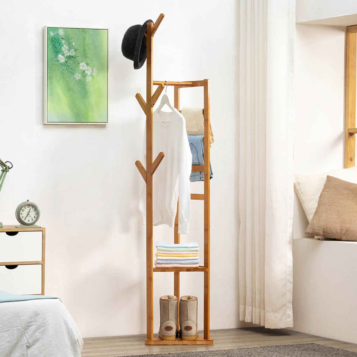 Made of durable bamboo material, the tensile strength of bamboo is 28,000 per square inch versus 23,000 for steel. Design of thick triangle solid plate and thickened supporting foot ensure better stability, could easily bearing the weight of 40KG at most. Coat rack and corner shelf 2 in 1, you would get better experienced and display in the same small place. Branch hooks can hang your hats, clothing, bags, umbrella etc , 3 tiers shelves can organize plants, bins, books, shoes etc. Flat packing, simple assembly. This entrance tree coat rack stand is an ideal storage solution for your living room, bedroom, room, office and entryway, makes organizing much easier.