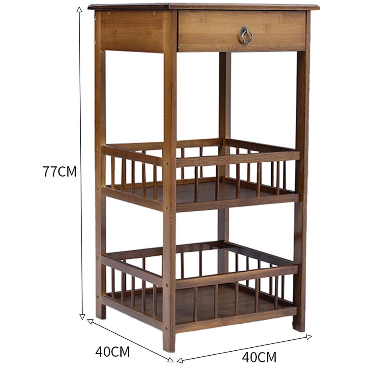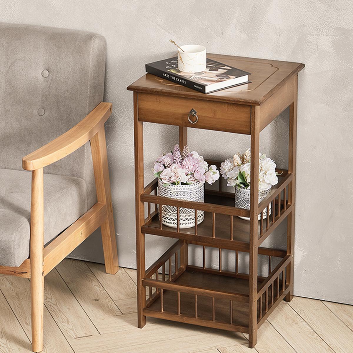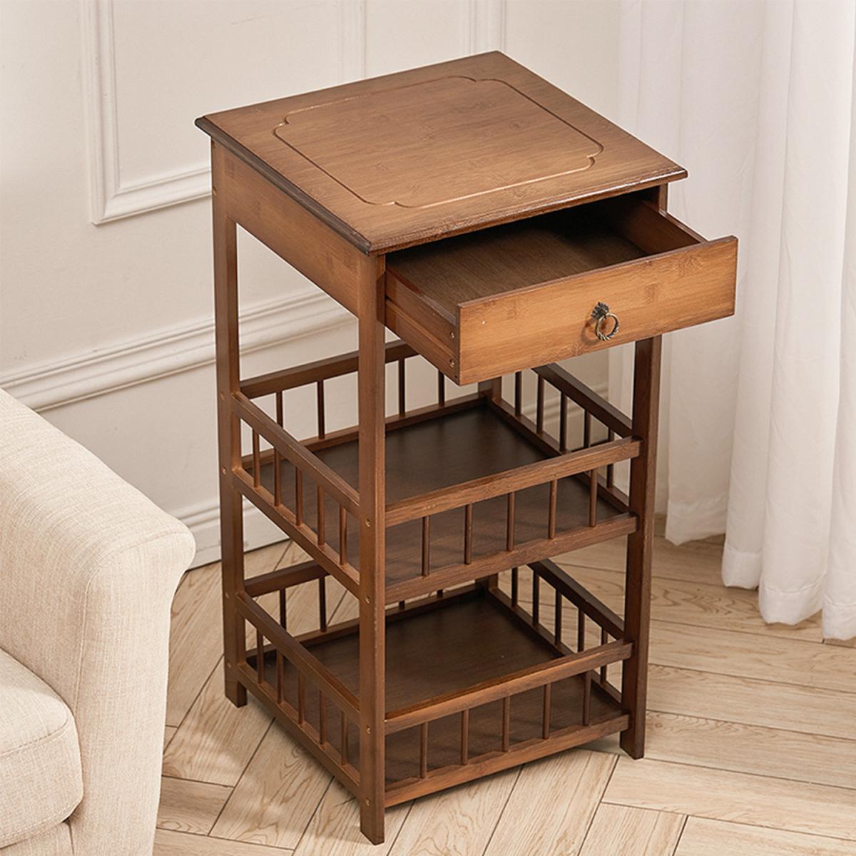 Bamboo Wooden Tiered Side Table with Drawer - Brown / 77cm