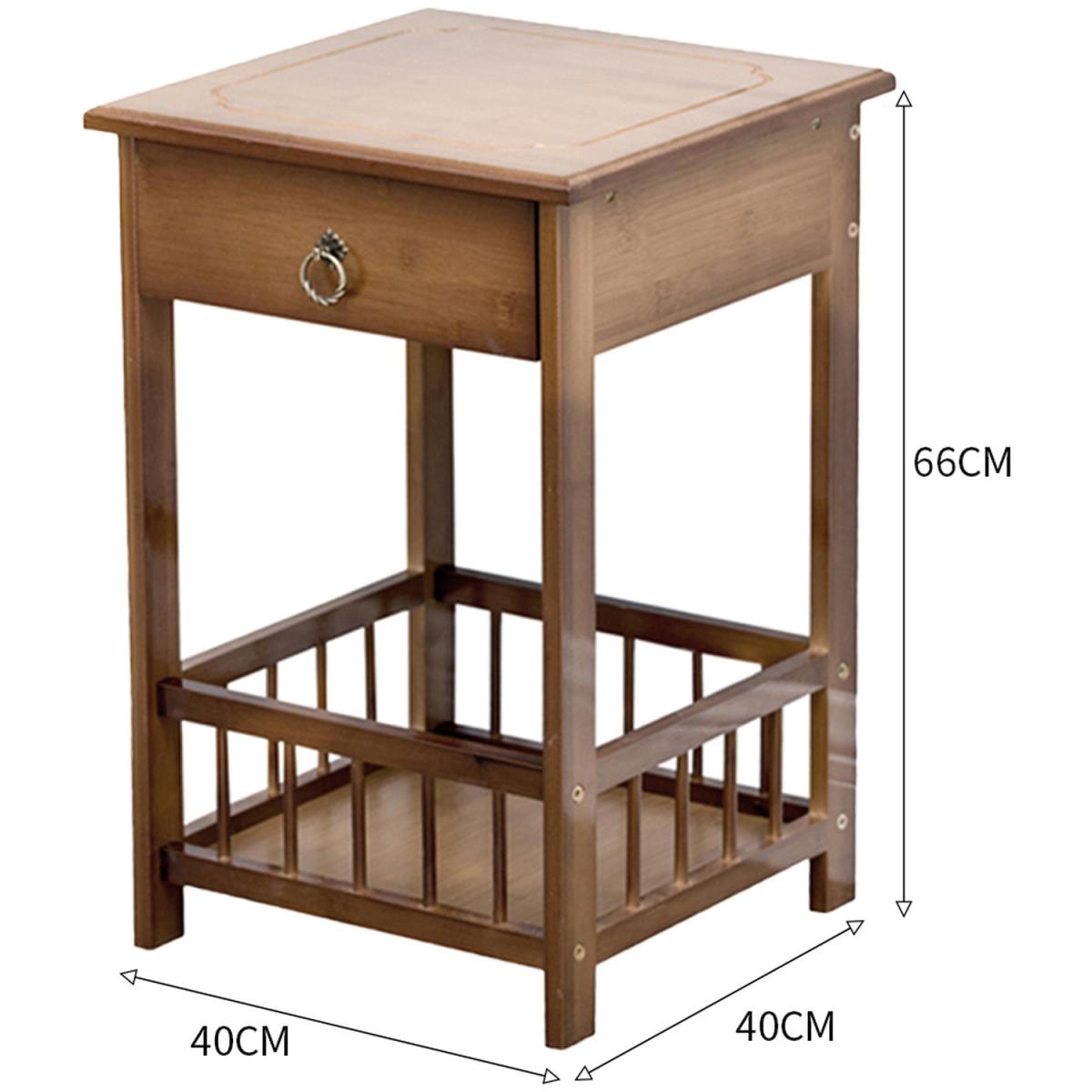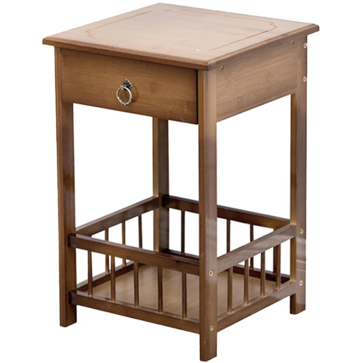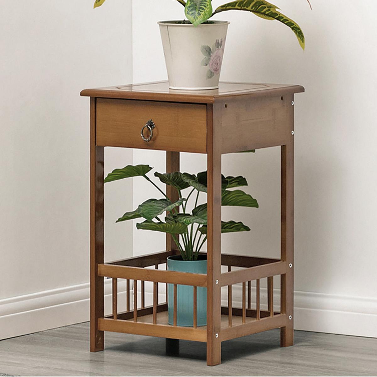 Bamboo Wooden Tiered Side Table with Drawer - Brown / 77cm