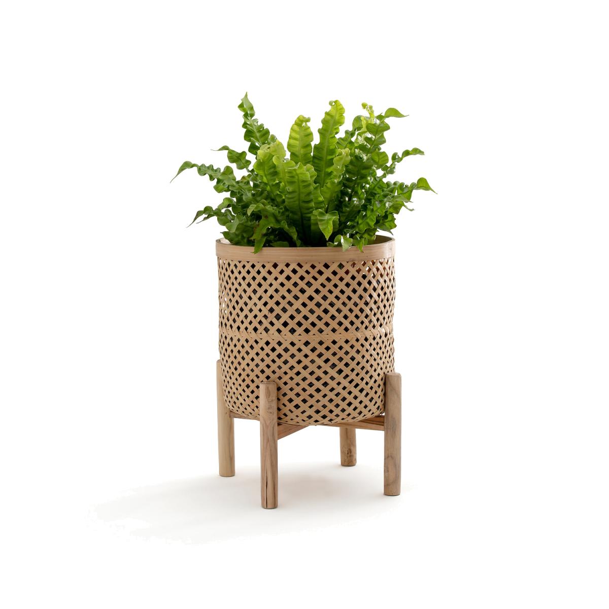 The Bambu bamboo flowerpot with stand. In a retro, on-trend spirit, the Bambu collection presents the standing plant pot with an openwork plant style. Product Details •  Bamboo flowerpot •  Teak baseDimensions •  . Flowerpot diameter: 31.5cm •  Overall diameter with foot: 36cm •  Height: 45cm. Dimensions and weight of parcel •  35 x 35 x 36cm •  1.8kg