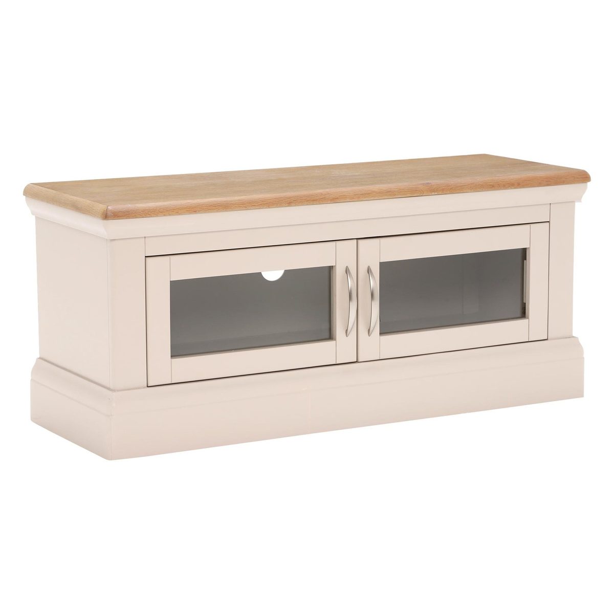 For a look that never goes out of style, choose the classically chic Bambury range. Our Bambury TV Unit features a stone coloured finish, a solid washed oak top and curved metal handles for a chic country-inspired look. Two spacious cupboard sections provide plenty of storage for your entertainment essentials.