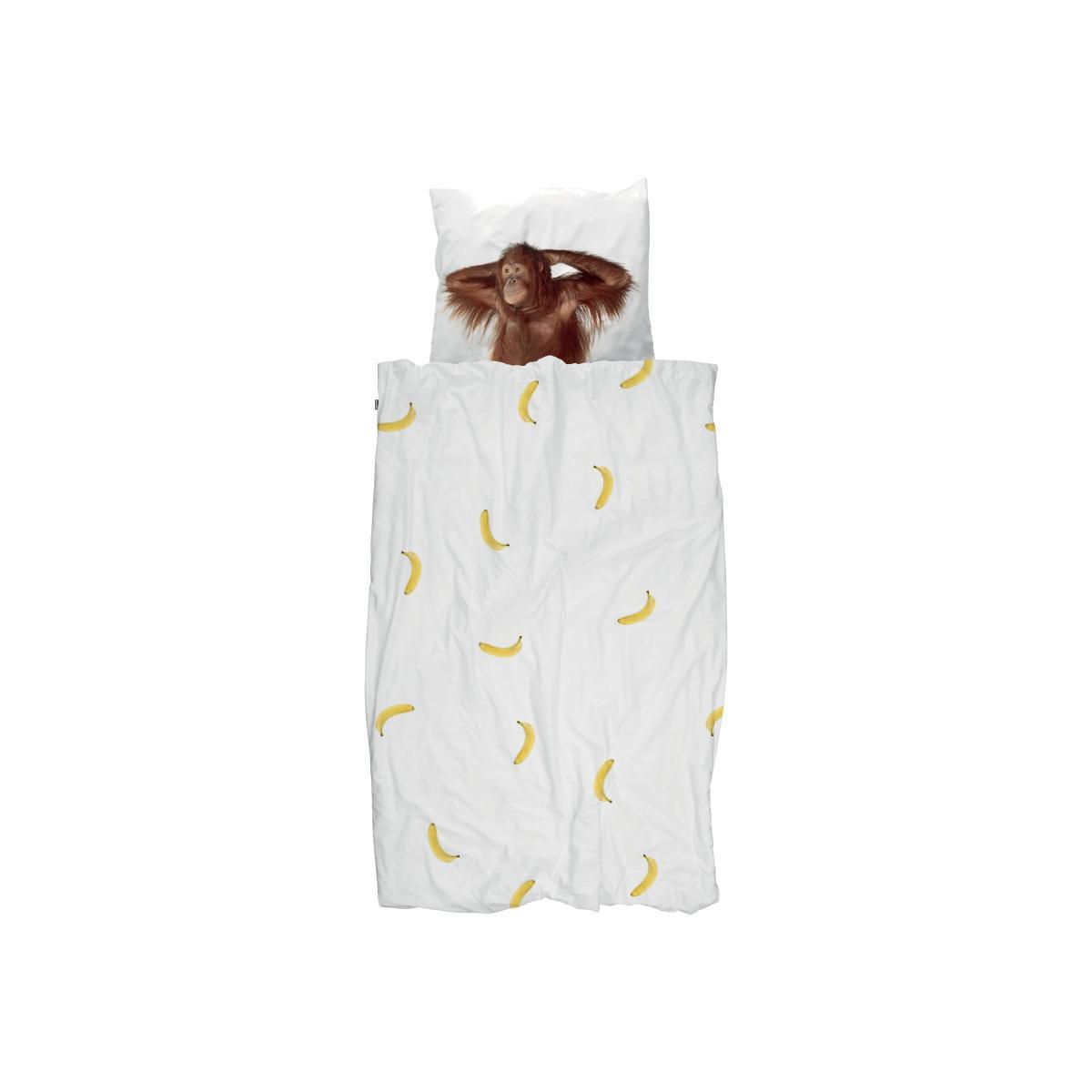 Banana Monkey Bedlinen set for 1 person - / 135 x 200 cm by Snurk White/Multicoloured