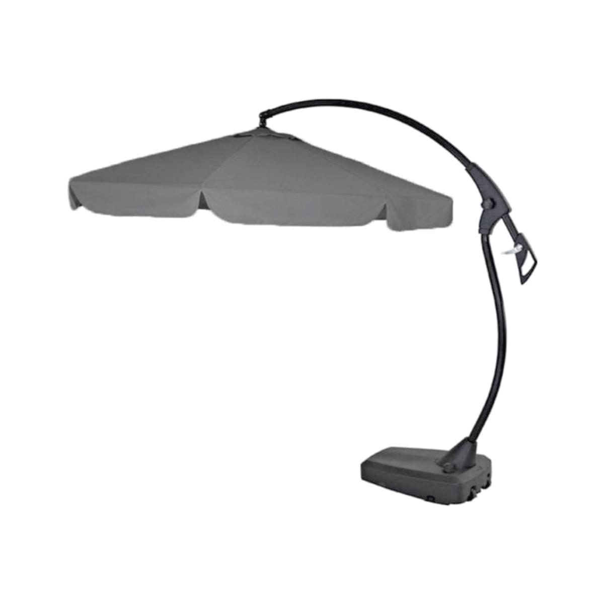 Design. The Grey Banana Parasol is practical and stylish, with its modern colour scheme which will match with a wide range of garden seating and loungers. The large canopy of the Banana Parasol is made from 230gsm polyester is UV rated to ensure quality protection from the sun on a hot day.