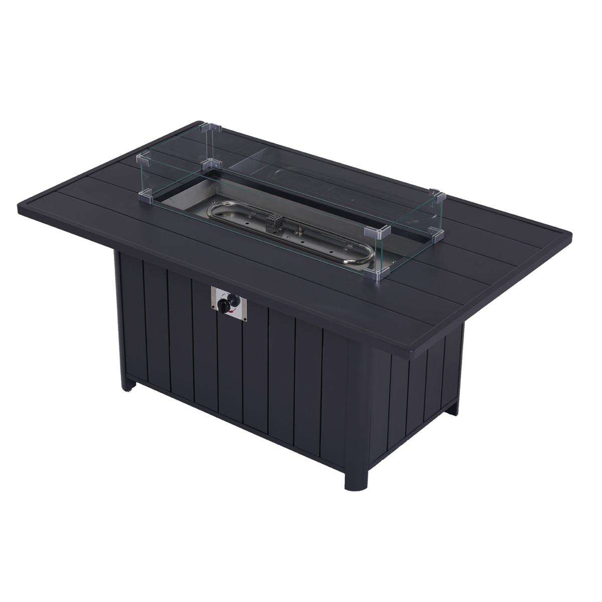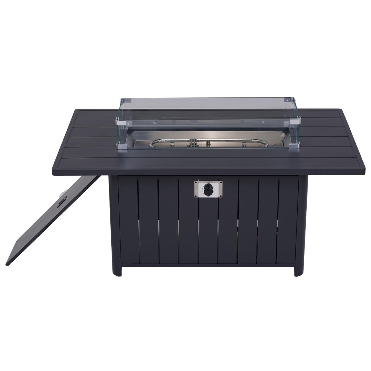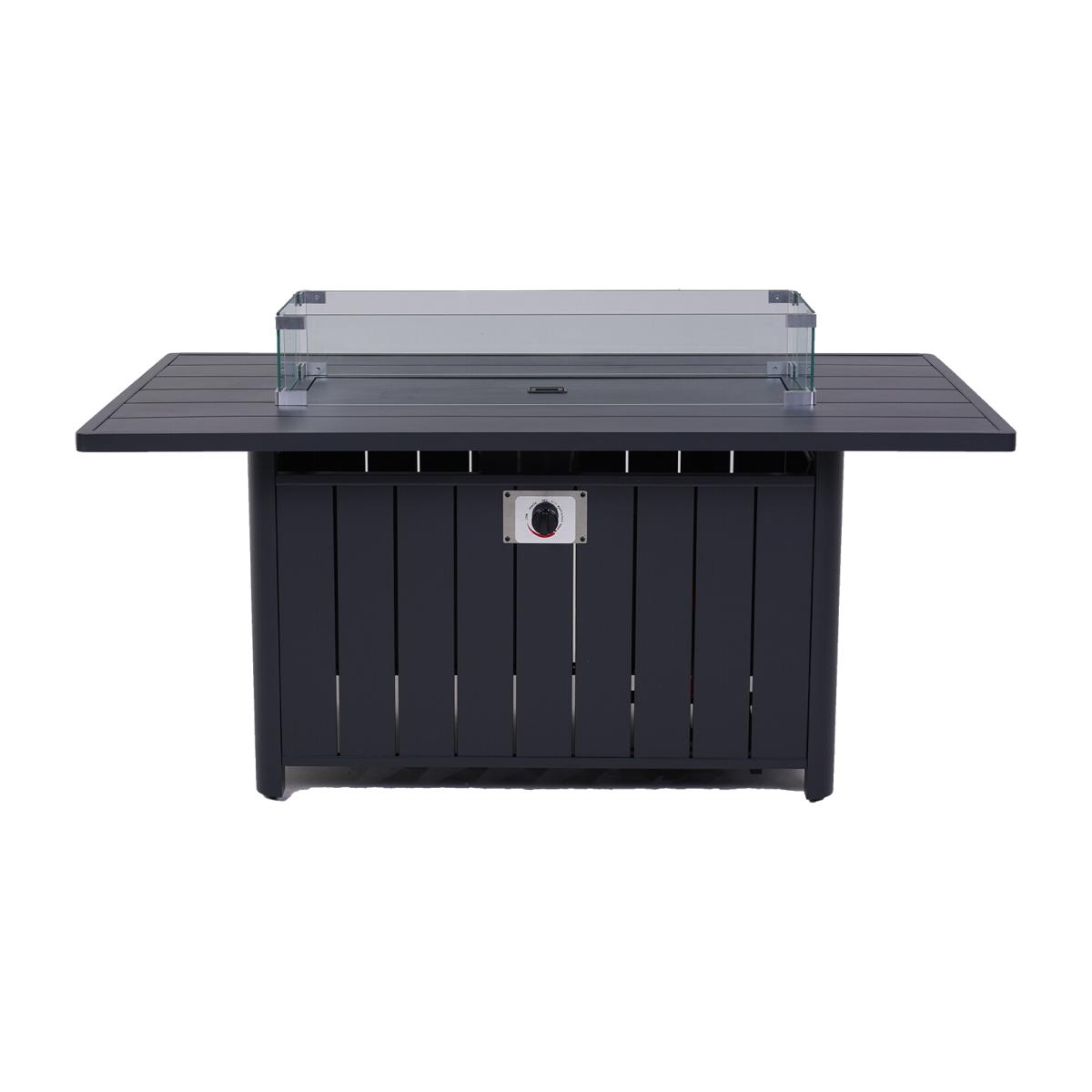 The Banbury Gas Fire Pit Table is an easy way to add lots of luxury to a contemporary-style garden. An ideal centrepiece, this sleek table has a sturdy black frame that will seem impressive to all who look at it, while the planked tabletop adds a sense of classic charm. The built-in firepit within the table adds a wow factor to your outdoor space and is sure to impress any guests as you light it up during the evenings. Allowing you to enjoy the sweet summer nights for longer, Banbury is perfect for any home that relishes spending quality time with friends and family under the stars. This outdoor table ios crafted from steel and is finished in a powder coating to ensure it remains resistant to changing weather conditions, while the glass fireguard will both protect your from flames and adds to the high-class look.