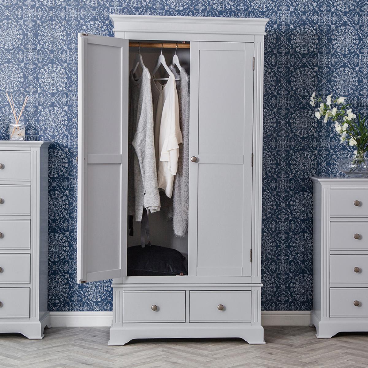 Every bedroom deserves a centrepiece, and the Banbury Grey Painted 2 Door Gents Wardrobe could be just what you’ve been looking for. It combines cornice detailing and artistically inspired indentations to create a piece that pays homage to the ornate stylings of days gone by. Everything is then brought right up to date thanks to the gentle pewter of the rounded handles, and not to mention the stunning light grey painted finish. As you inspect every square inch of your new Double Wardrobe you’ll be able to enjoy the attention to detail that’s gone into creating it.