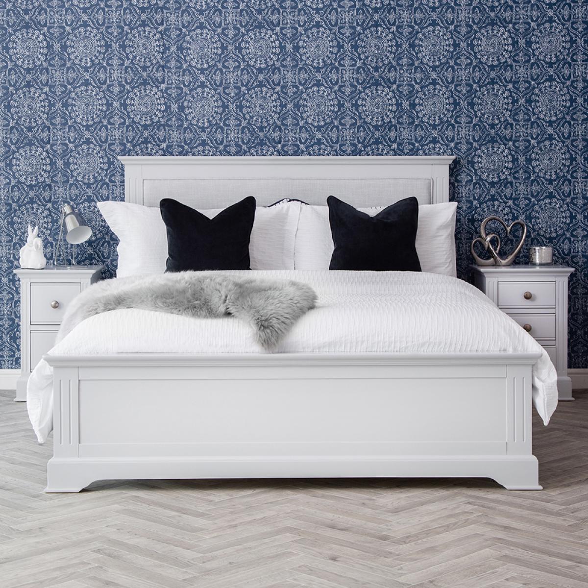 The Banbury Grey Painted 4'6 Double Bed Frame welcomes you into the room the moment you see it thanks to its combination of contemporary style and ornate features. Whether you love the cornice detailing around the edges, the subtle lines and indentations, or the relaxing feel of the light grey painted finish, you’ll be able to rest and relax like never before. It’s exactly what you would expect from the statement piece of one of our most popular ranges. The only question you need to think about is whether you want to upgrade your Wooden Bed Frame and go for the king size option.