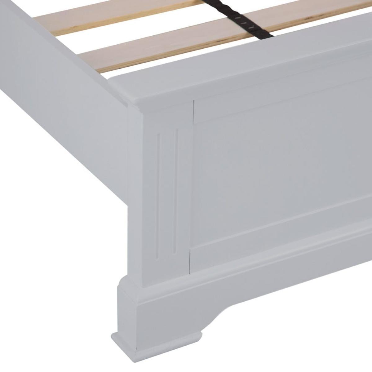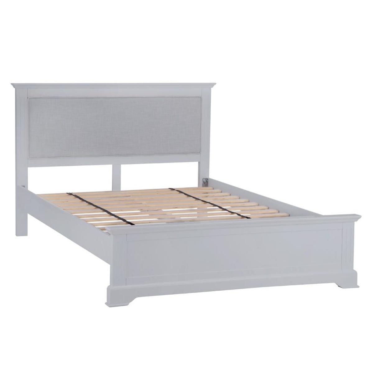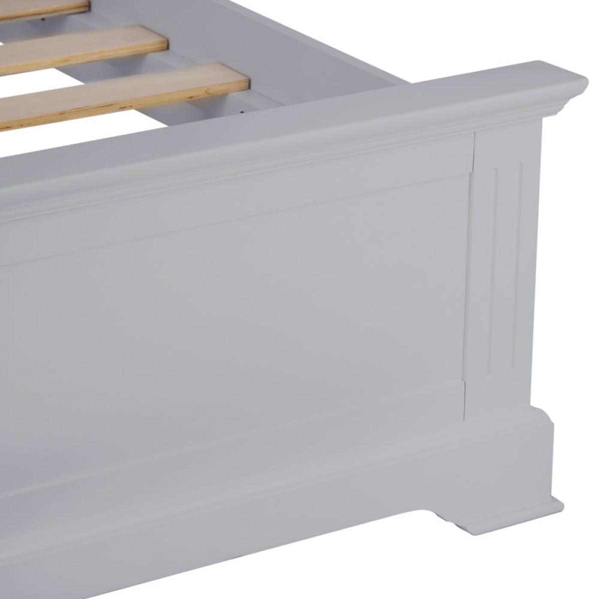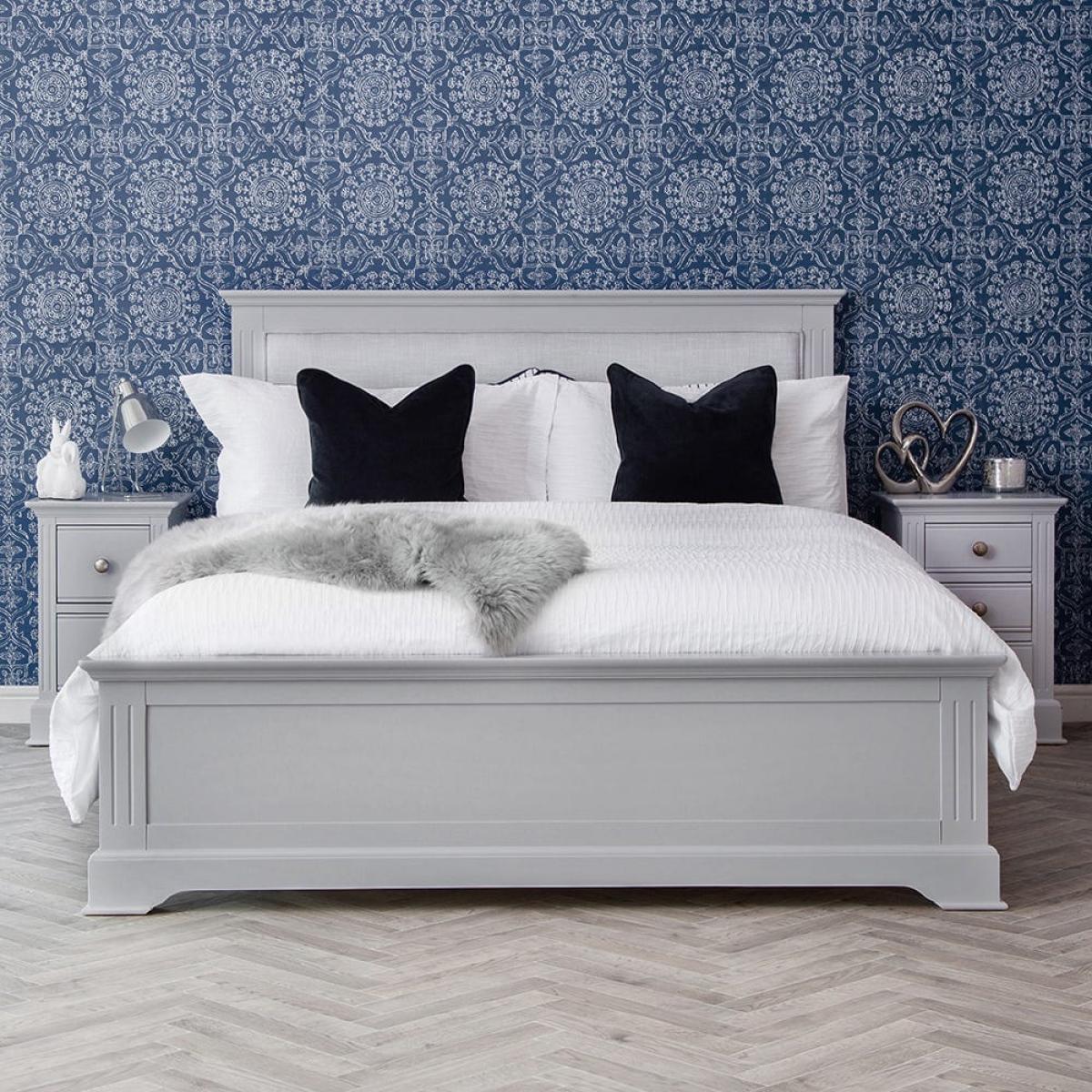 Catch some Zs in comfort and style when you add the Banbury grey painted king size bed frame to your cosy bedroom setup. There’s nothing quite like laying your head down at the end of a day for a hard-earned rest supported by this carefully crafted wooden bed frame. At 165cm wide, this king size frame makes a fitting bedroom centrepiece. Its solid pine frame and beautifully panelled footboard and headboard, finished in eye-catching grey, make a subtle yet sophisticated statement. The rounded corners and cornice detailing of this bed frame’s panelling convey a quiet elegance.
