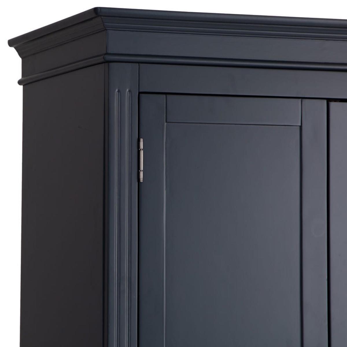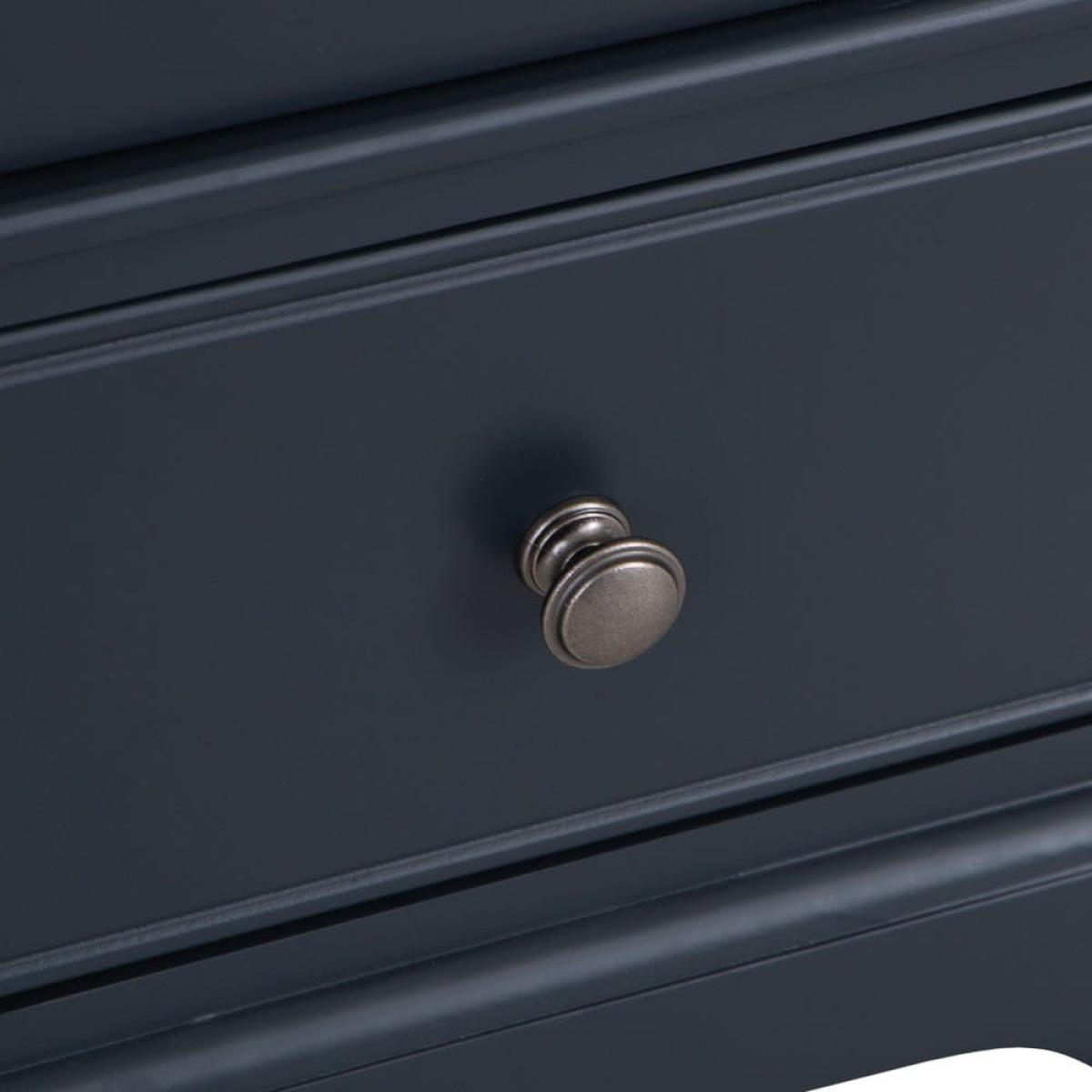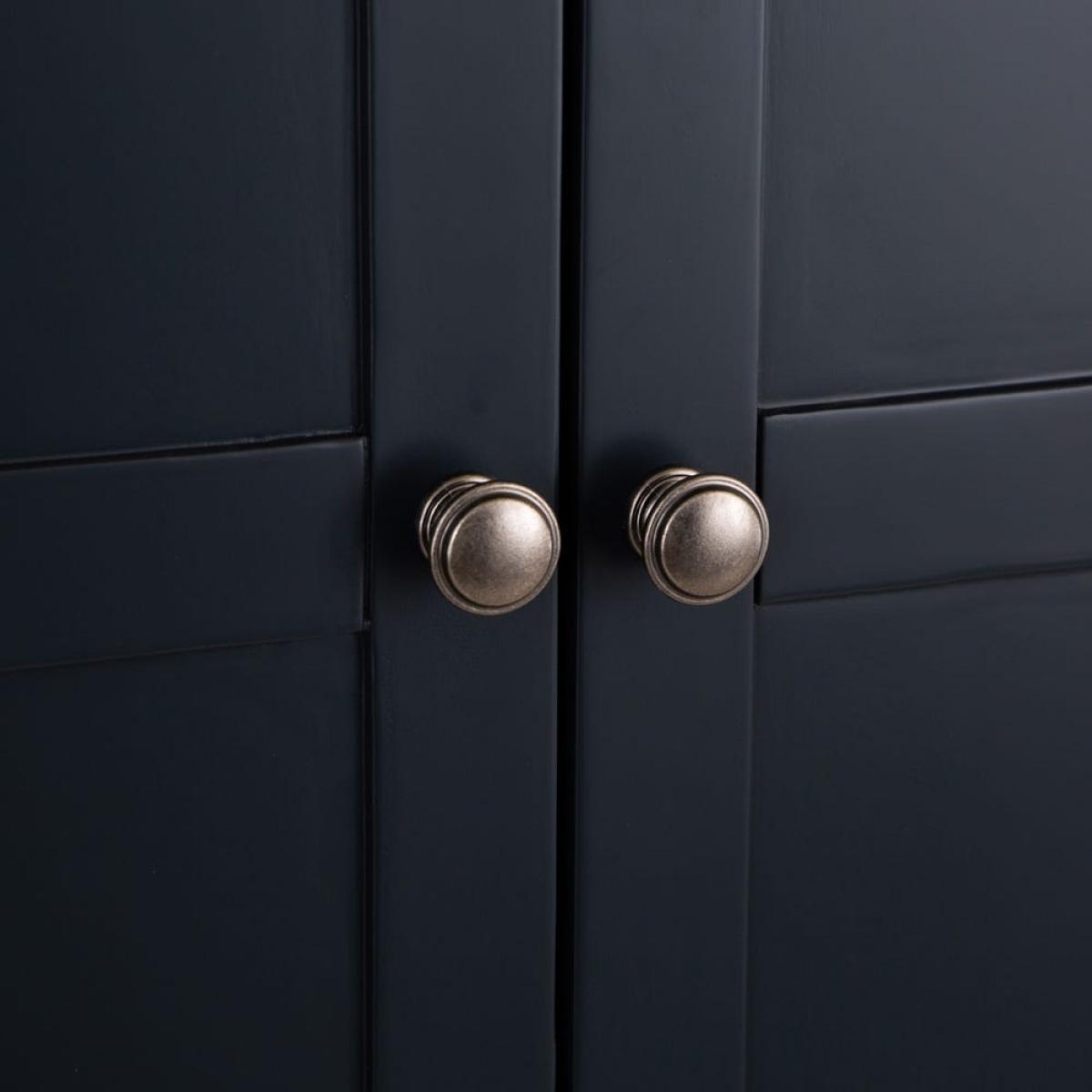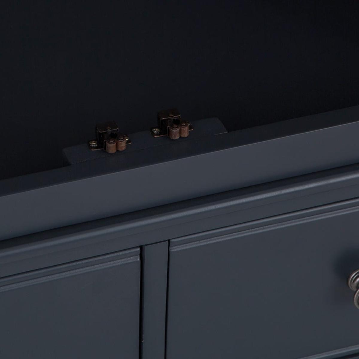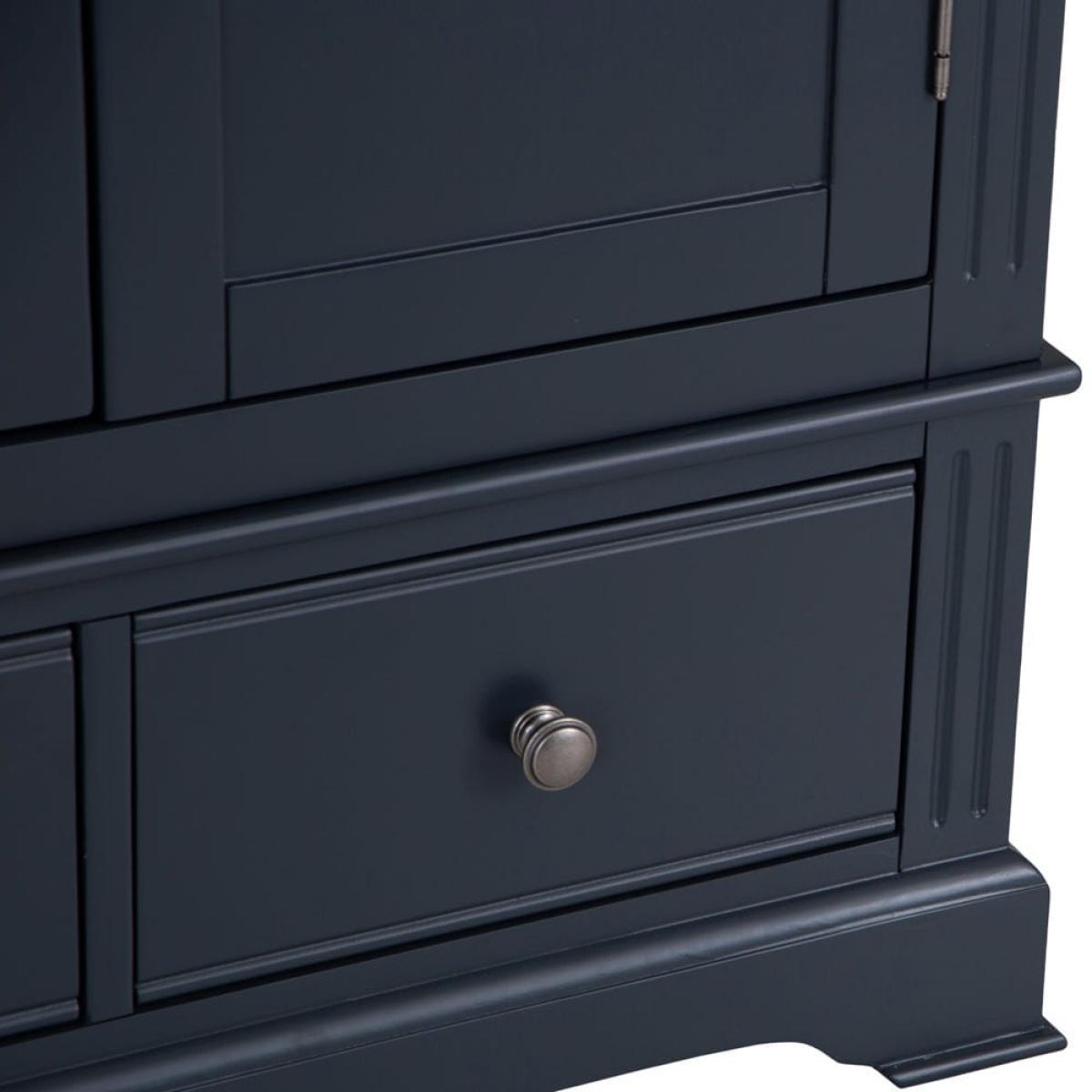 Bring the peace and serenity of a cloudless starry night into your bedroom with the Banbury midnight grey painted 2 door wardrobe with drawers. The elegant cornice detailing across its top surfaces and ornate wooden panelling add a touch of artisan sophistication to any bedroom. It’s offset by classy round pewter handles that tie the whole look together. Hang your best glad rags behind the wardrobe’s gorgeous midnight grey painted doors. And the roomy drawers are perfect for storing an extra blanket or two for wrapping up warm on a chilly winter’s evening.