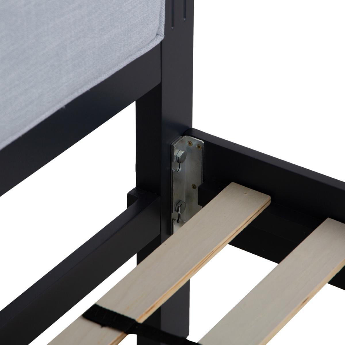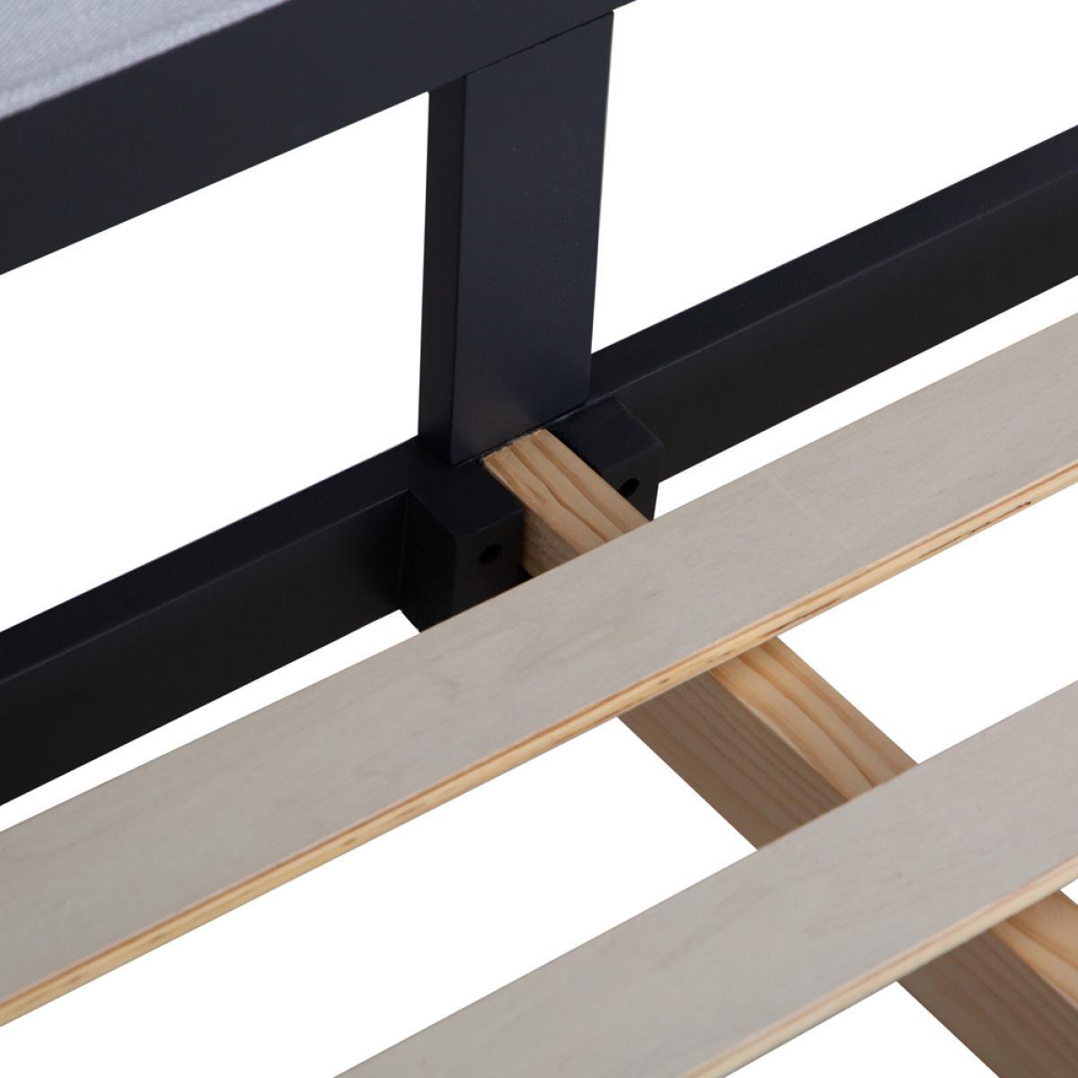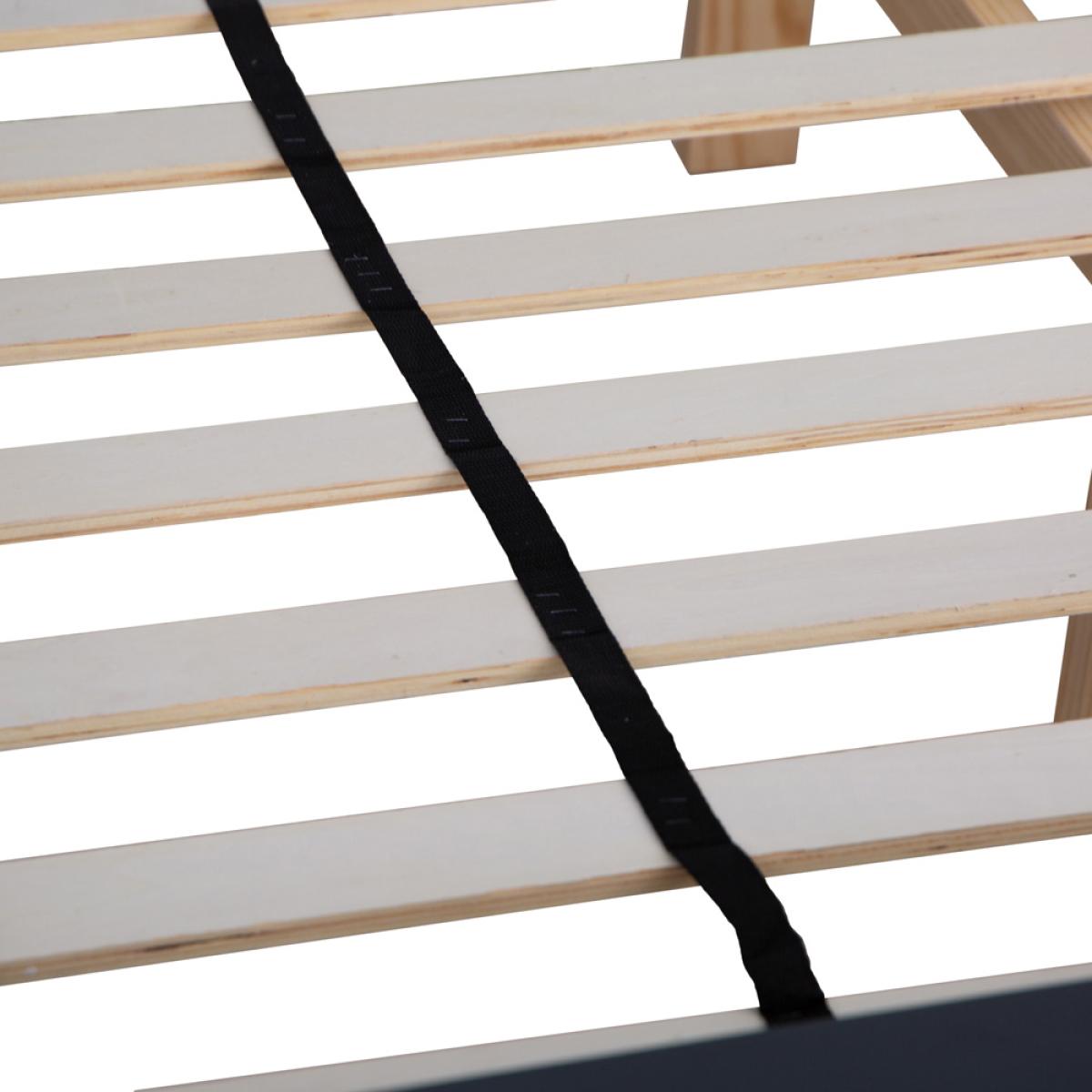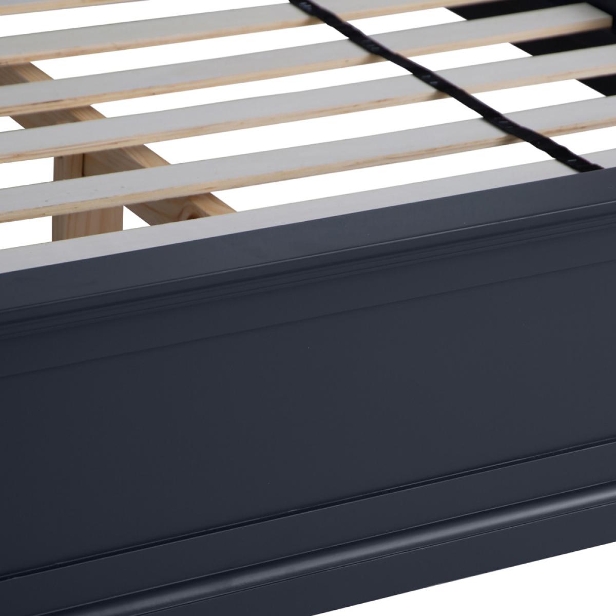 The bed frame in question boasts a sleek, modern aesthetic with its midnight grey finish, making it a versatile choice for contemporary interiors. I love how its clean lines and understated design can anchor both minimalist and more layered, textured bedrooms. It's particularly effective in monochrome schemes or with muted colour palettes, but can also serve as a neutral base for adding pops of colour through bedding or accessories. Styling tips include pairing it with crisp white linens for a fresh look, or layering in plush throws and cushions in tactile fabrics for added comfort and visual interest. Its sturdy design and neutral tone make it a practical yet stylish focal point that elevates the overall room design.