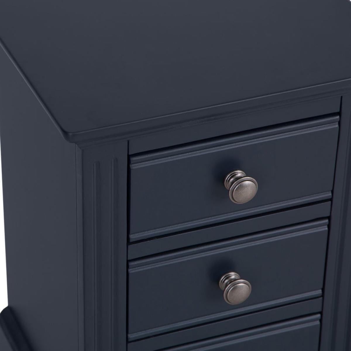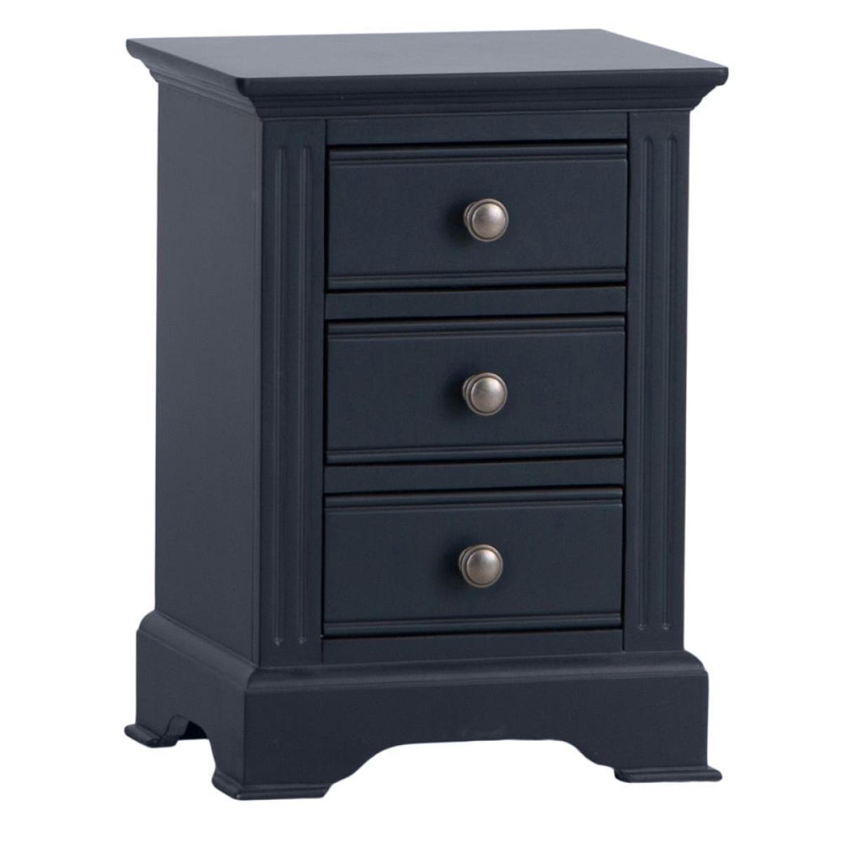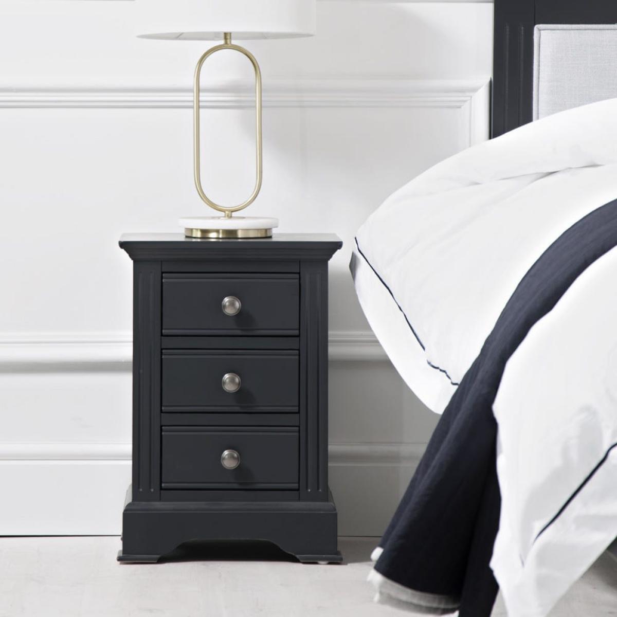 Bedtime reading never felt so cosy with the Banbury midnight grey painted large bedside table. Plug in a lamp and snuggle up with your favourite paperback to enjoy the gorgeous deep grey finish that defines our Banbury collection. The combination of carved detailing with pewter-effect drawer handles and the clean lines of the base creates a perfect blend of modern and classic. Whether your bedroom interior is ultra-current or vintage-inspired, this bedside table will feel right at home. Better still, it doesn’t require any assembly, so all that’s left is to decide what to keep in each of its three generous drawers.
