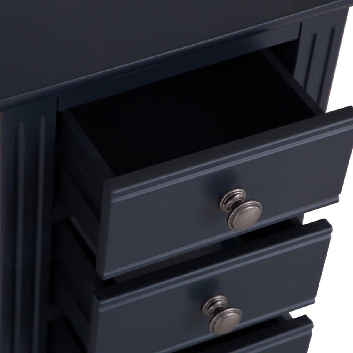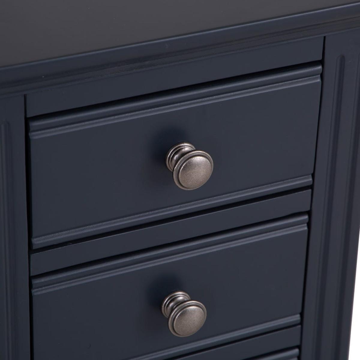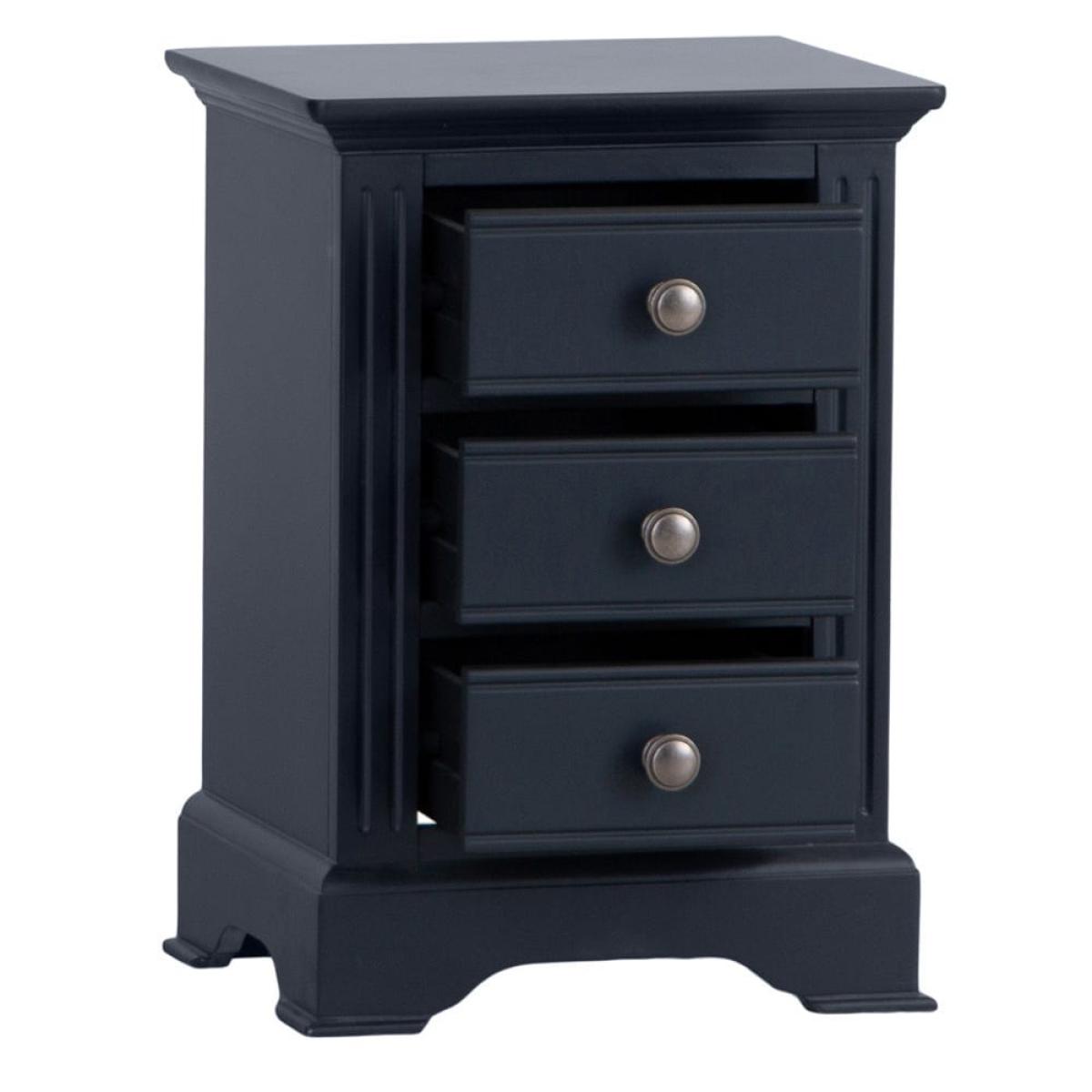 Bedtime reading never felt so cosy with the Banbury midnight grey painted large bedside table. Plug in a lamp and snuggle up with your favourite paperback to enjoy the gorgeous deep grey finish that defines our Banbury collection. The combination of carved detailing with pewter-effect drawer handles and the clean lines of the base creates a perfect blend of modern and classic. Whether your bedroom interior is ultra-current or vintage-inspired, this bedside table will feel right at home. Better still, it doesn’t require any assembly, so all that’s left is to decide what to keep in each of its three generous drawers.