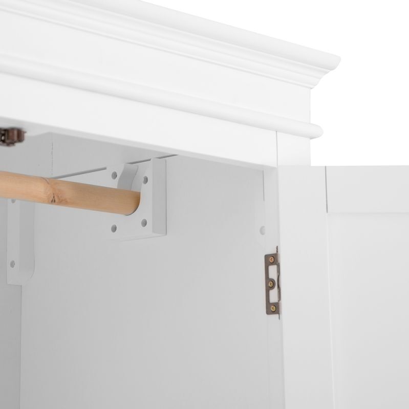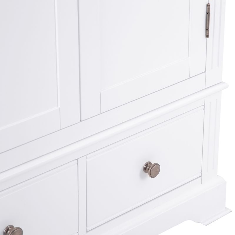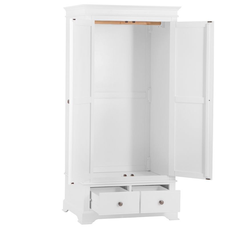 Our 2-Door Wardrobe is the ultimate in refined storage thanks to its large main com-partment, and pair of matching lower drawers. This makes it the ideal choice for hanging up suits or shirts, and storing casual clothes or accessories underneath. It also has plenty of style to go with the substance, and the intricate finishing around the edges and front surfaces are just the starting point. Elegant feet and striking pewter knobs make this a true statement piece that no home should be without. All you need to do now is decide which bedroom you’re going to treat first.