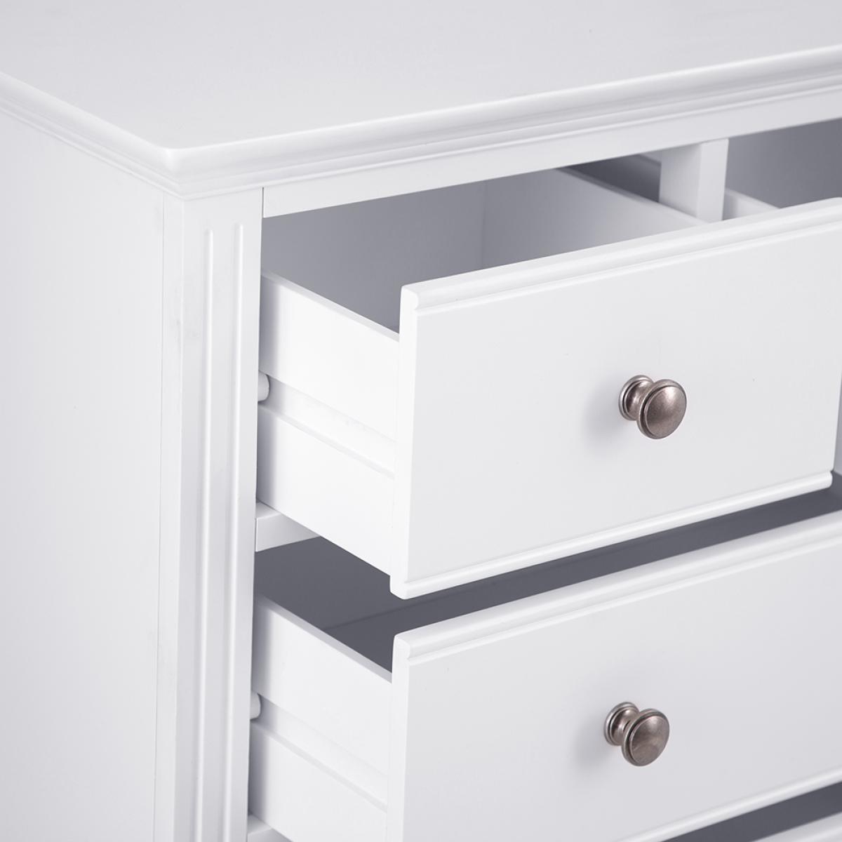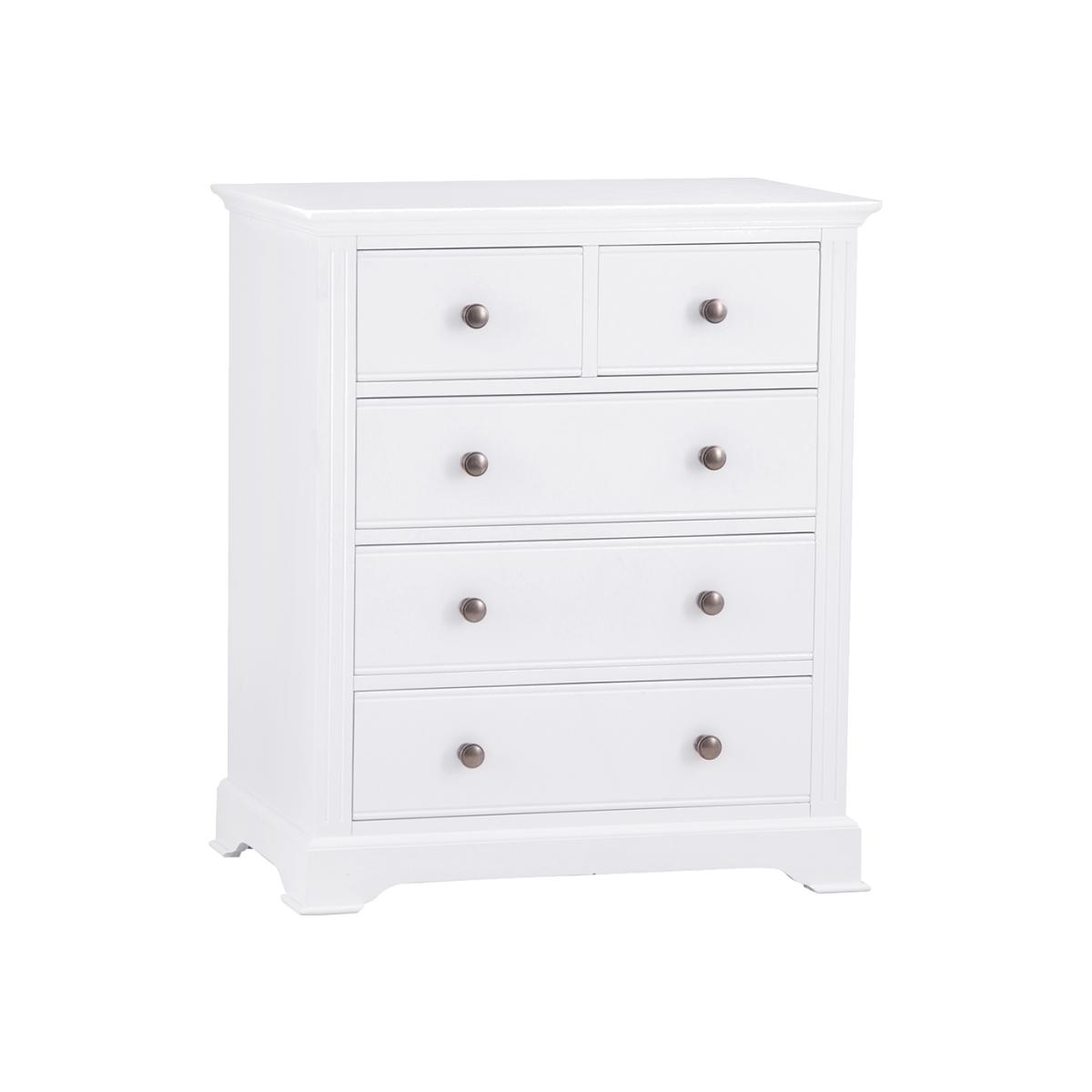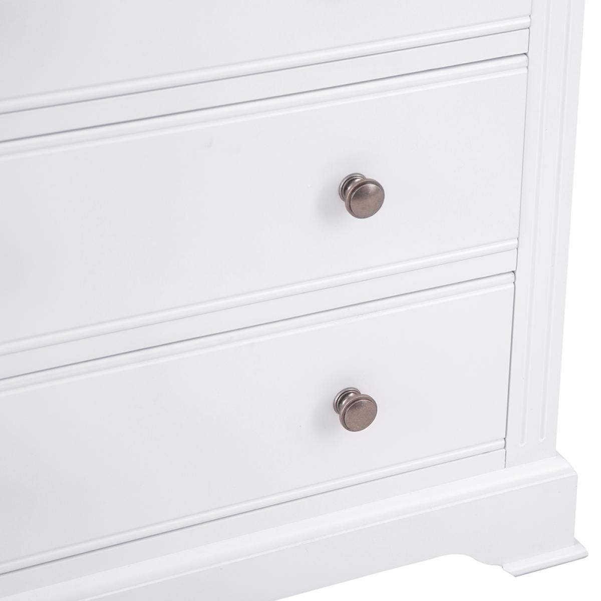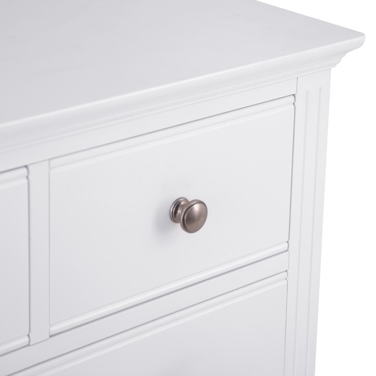 Transform the bedroom in an instant with a little help from this eye-catching 2 Over 3 Chest of Drawers. With a pair of smaller drawers sitting atop a trio of large storage drawers you’ll have more than enough room for your favourite outfits and accesso-ries. When you’re deciding on how to style the rest of the room, it’s worth remember-ing that the subtle interplay of the pewter-style handles and cornice detailing make this a set of drawers that works everywhere from modern homes to period properties. Just what you need when you want to breathe new life into your favourite room in the house.