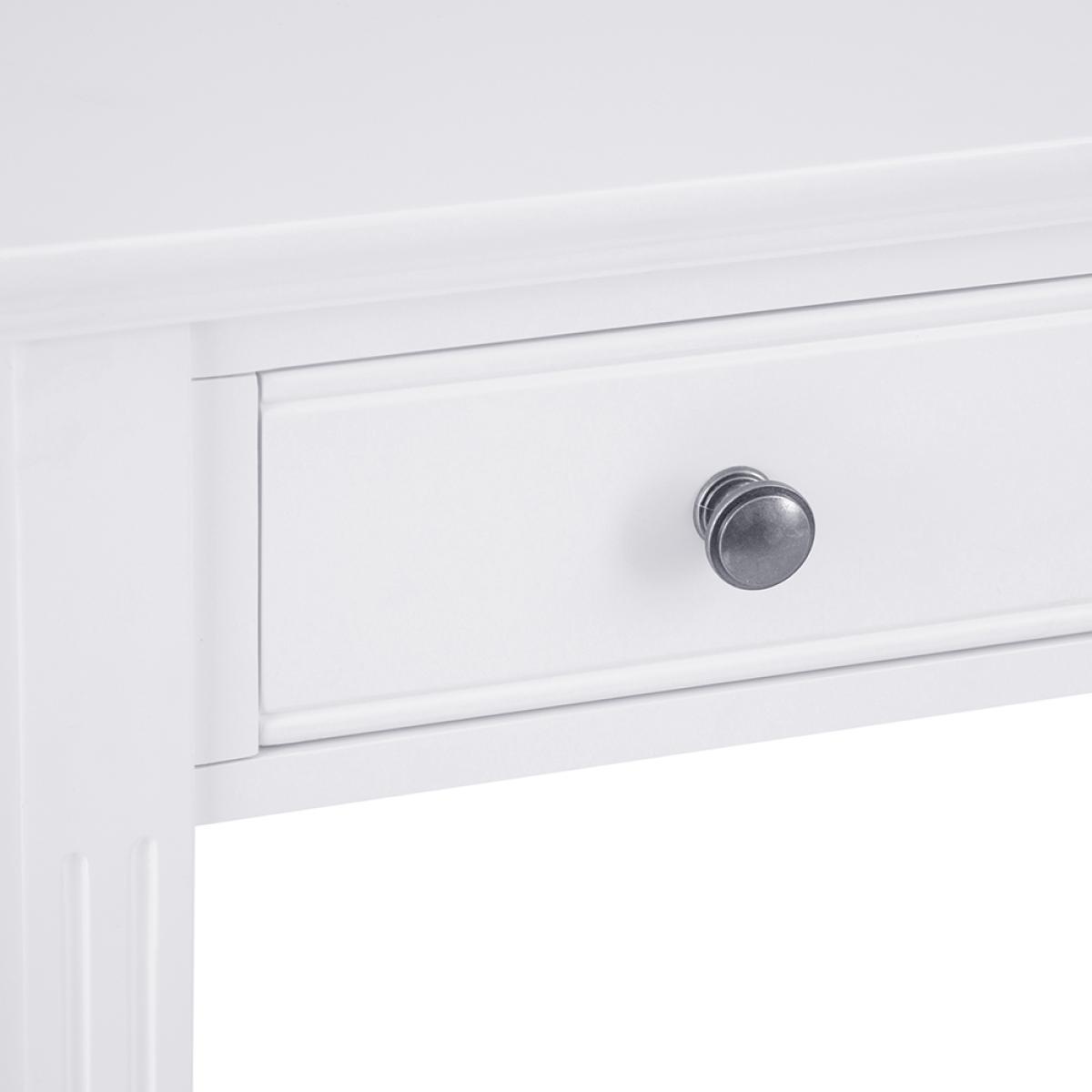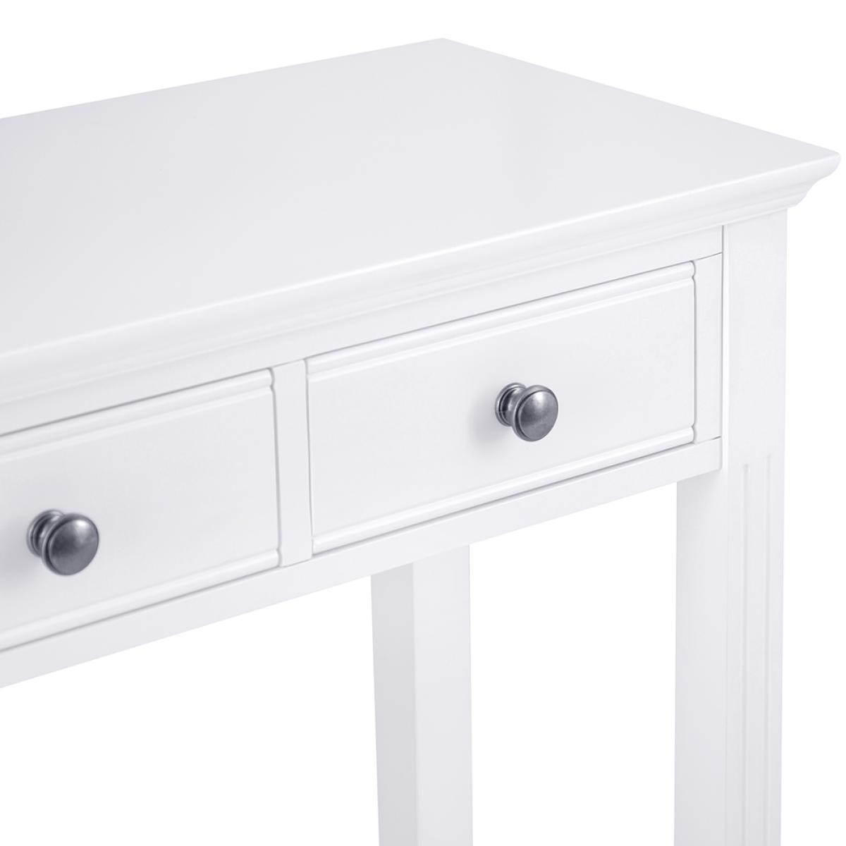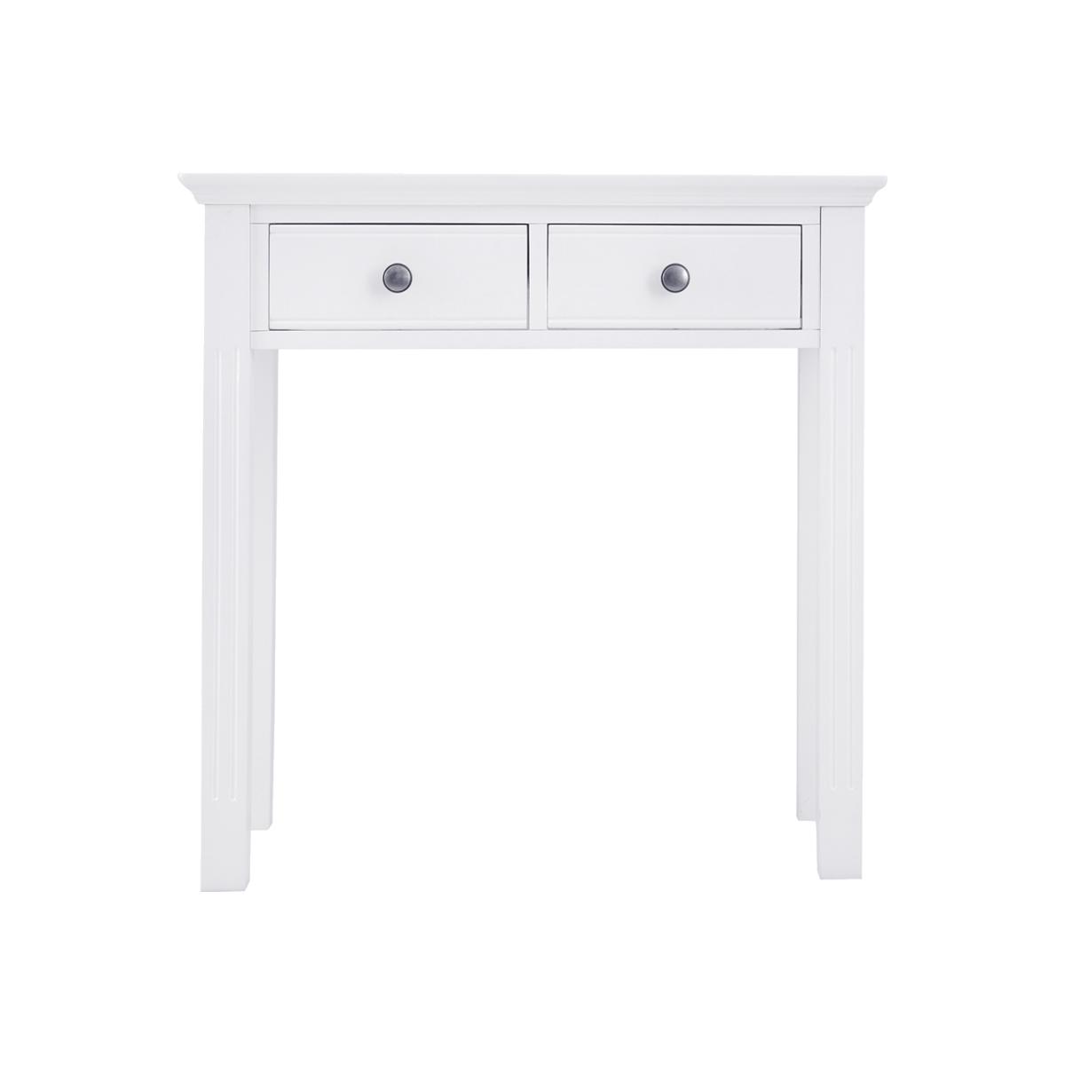 When nothing but the most elegant and stylish furniture will do, our Painted Dress-ing Table is the only option. The thick top is beautifully framed by cornice detailing for an inspired finish, whilst the pair of drawers provide ample storage for all of your little bits and pieces. Everything is brought together by the slender legs which give the Dressing Table the poised and elegant look you’ve been searching for. All you need to do now is shop the rest of our Banbury range and pair the dresser with our matching Trinket Mirror and Painted Stool.