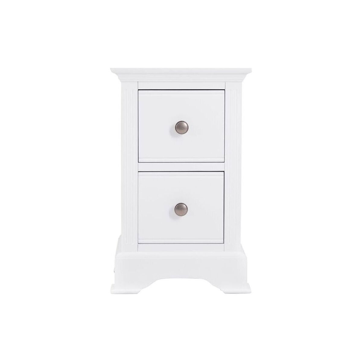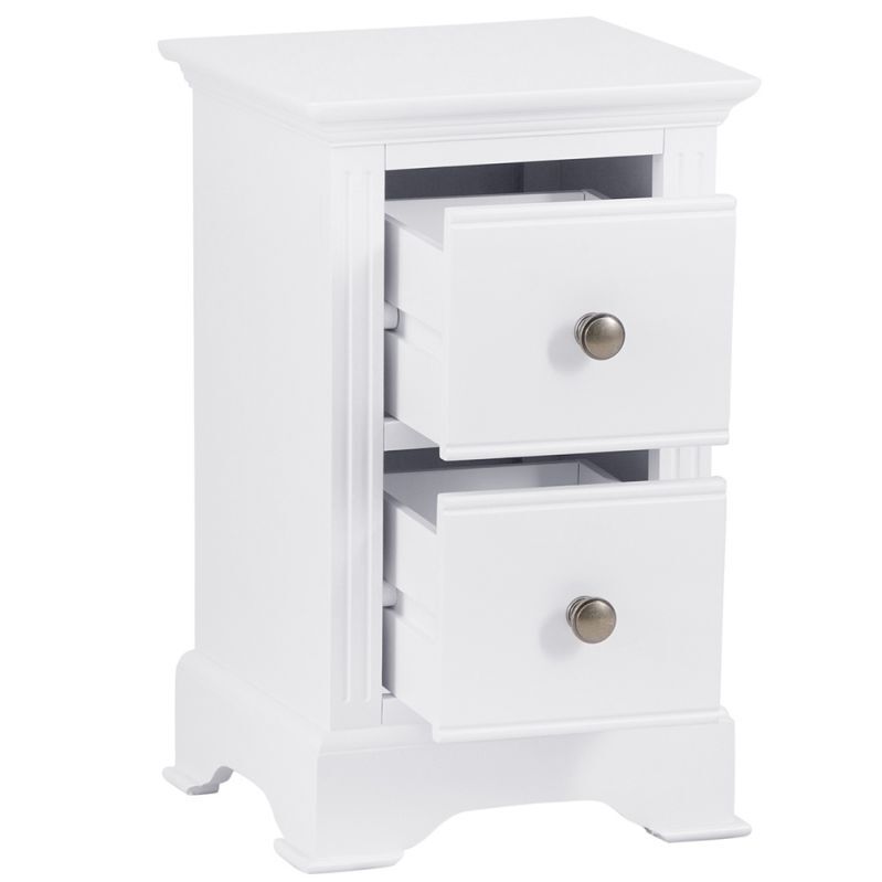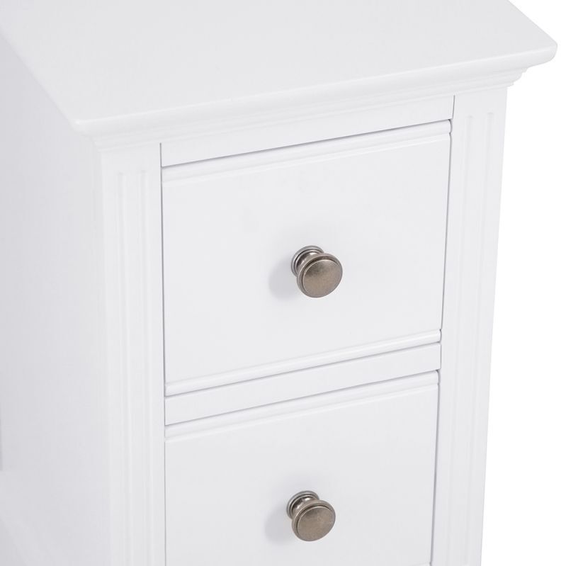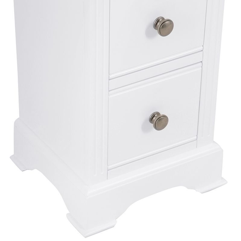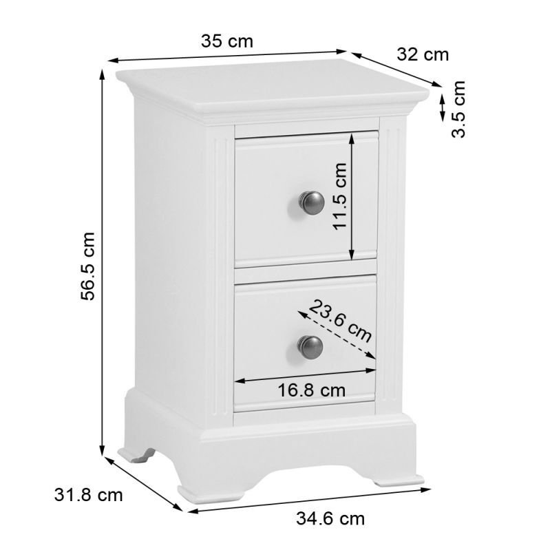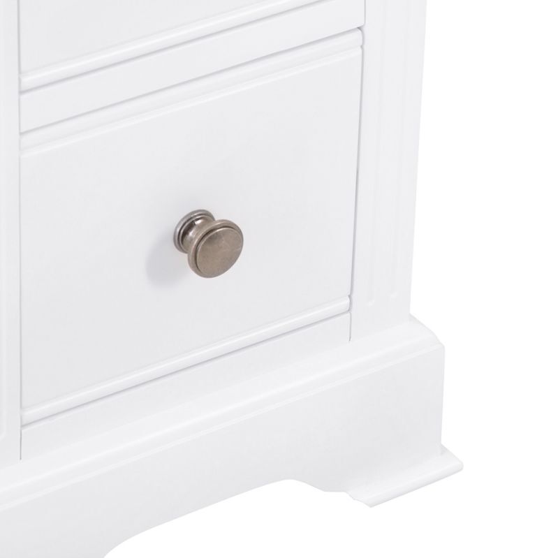 Our signature Banbury White Small Bedside Table is a popular member of one of our most sought after ranges. By combining neutral pewter knobs with an intricate cornice detailing around the top, it creates a stunning visual that will take pride of place in any home. When you add the gentle finish of the white to the mix you have the recipe for an inspired bedside addition to the modern home. Not only that, but because of the way it borrows from more traditional styles and lines it's able to fit seamlessly into period properties for a look that lasts a lifetime. With no assembly required upon arrival, all you need to do is click a button.