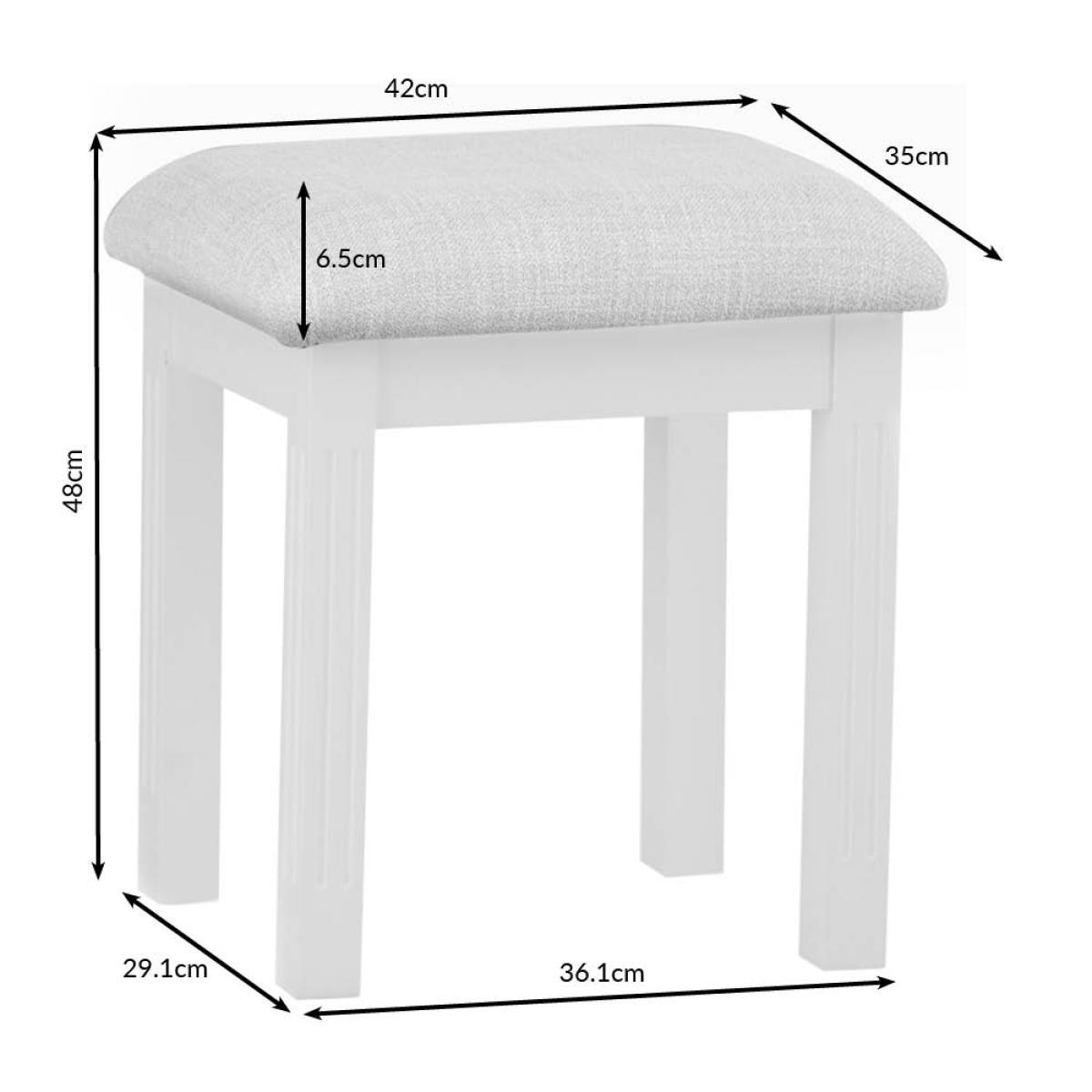 Our Dressing Table and Trinket Mirror just wouldn’t be complete without a matching Painted Stool, which is why we created one just for you. The upholstered top is comfortable and plush, whilst the wooden legs give it the stylish touch you’d expect from the Banbury collection. It makes for the perfect addition to the bedroom when you want to add comfortable seating options without breaking up your floorspace. Look closer and you’ll see the subtle detailing that runs the length of the legs and is one of the hallmarks of the collection. An inspired choice for any lover of elegant furniture who wants to treat themselves.