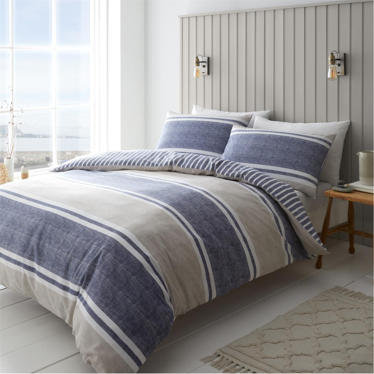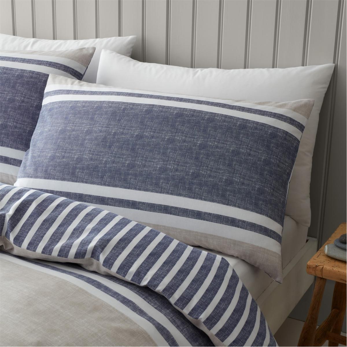 I really like the banded stripe duvet and think it’s a practical choice for a variety of interiors. Its reversible design makes it versatile, allowing you to switch up the look easily-perfect for changing seasons or moods. The soft, neutral tones with a classic stripe pattern work well in cosy, coastal, or contemporary schemes, adding a touch of understated style without overpowering the room. When styling, consider pairing it with plain or subtly textured bedding and accessories to keep the look balanced. A few carefully chosen cushions in complementary colours or textures will finish the bed neatly, and since the duvet is reversible, it’s a smart, low-maintenance option for bringing a fresh feel to your bedroom anytime.