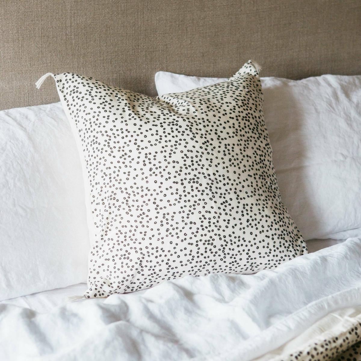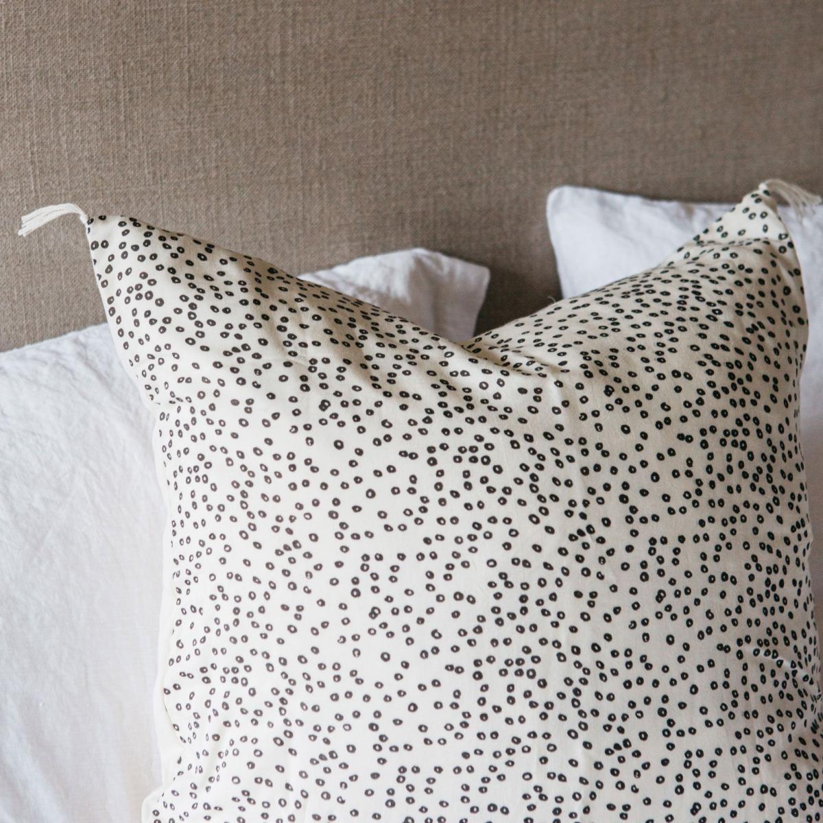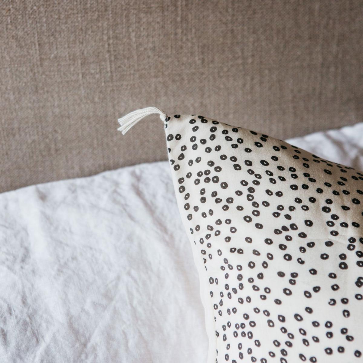 Made of 100% cotton with a monochrome design, our Bandhej cushion is the perfect finishing touch for your bed, sofa or armchair. The minimal circle print complements a range of interior themes.