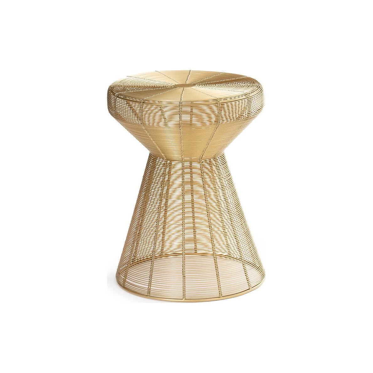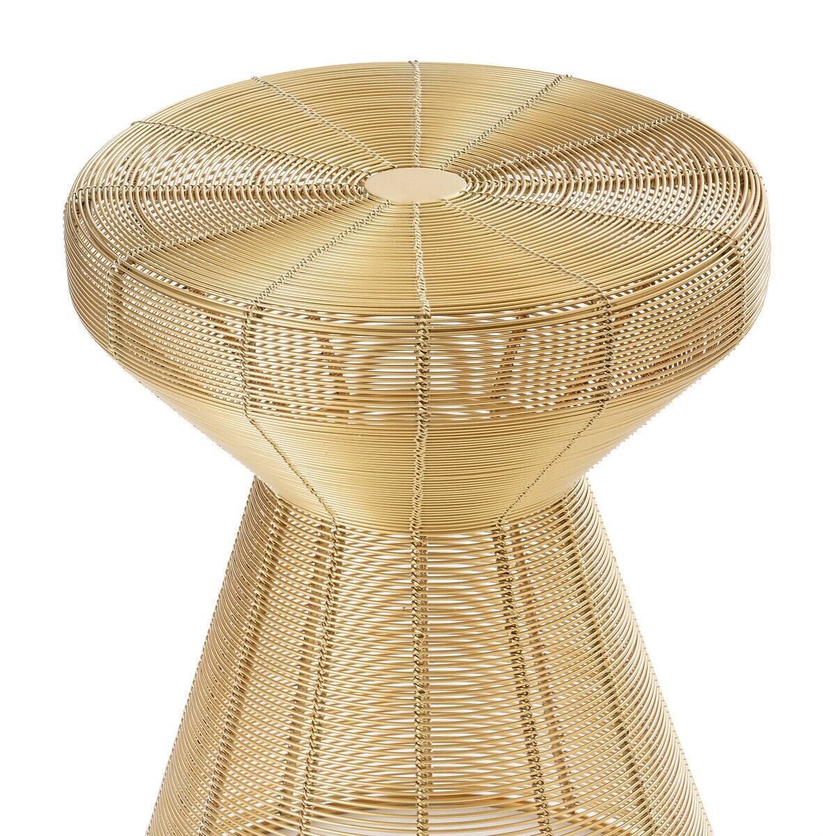 The Bangor side table / stool. Inspired by the current trend for wire furniture, this golden side table (or stool) will bring a touch of light to your home. It can be used as a side table, stool, pedestal table, small coffee table or bedside table.