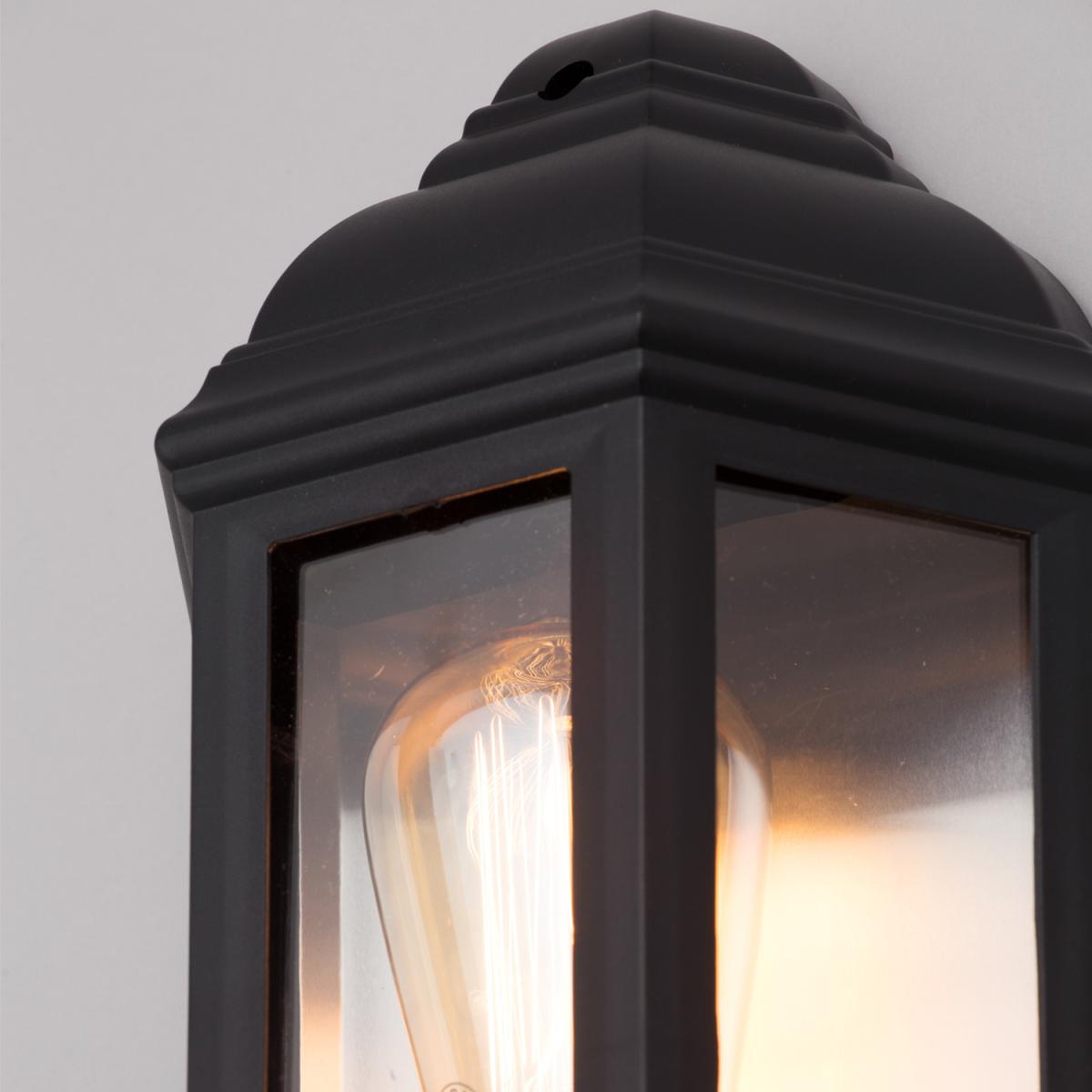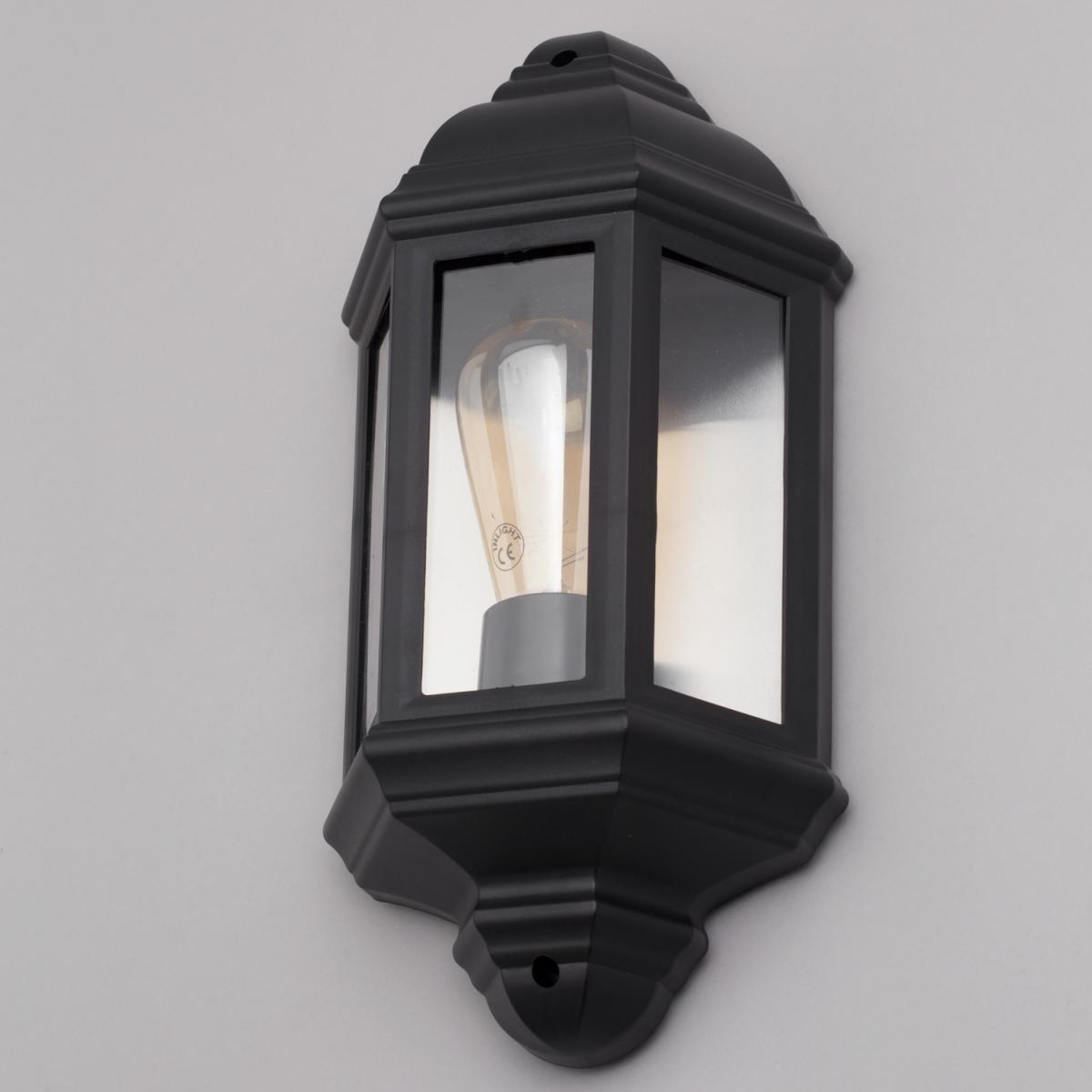 Add a traditional accent to your home with the Bangor Outdoor Wall Lantern in Black. The IP44 rating of this outdoor wall light is means that it is water resistance and perfect for withstanding the British showers. The 3 glass panels of this wall lantern allows for a large amount of light to be emitted.
