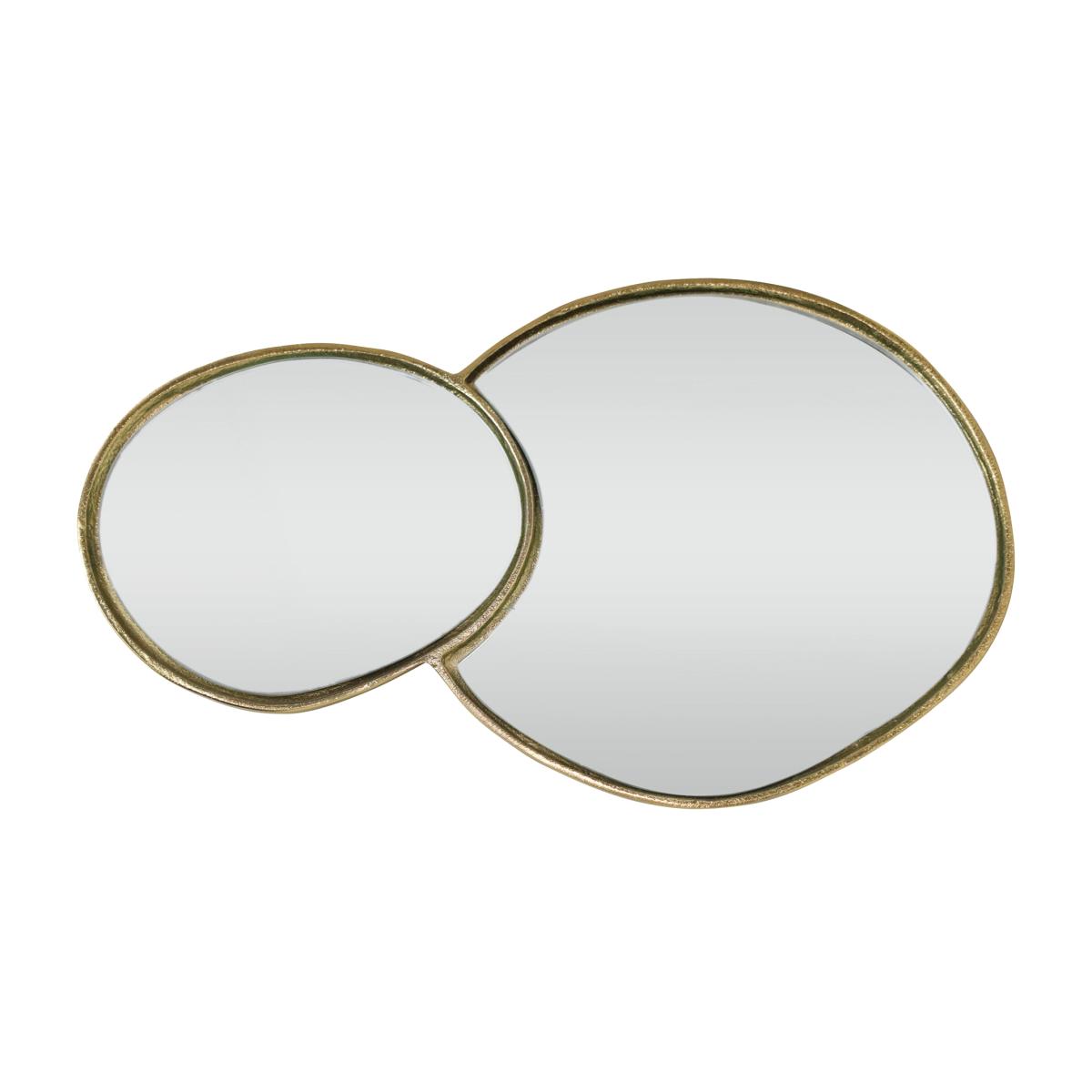 Two intertwined blob mirrors make up a pleasing wall hanging decoration. A gold finish to the metal frame adds to the light quality of the Bani mirror. Lighten up your bedroom, living room or hall. Two intertwined blob mirrors make up a pleasing wall hanging decoration. A gold finish to the metal frame adds to the light quality of the Bani mirror. Lighten up your bedroom, living room or hall.