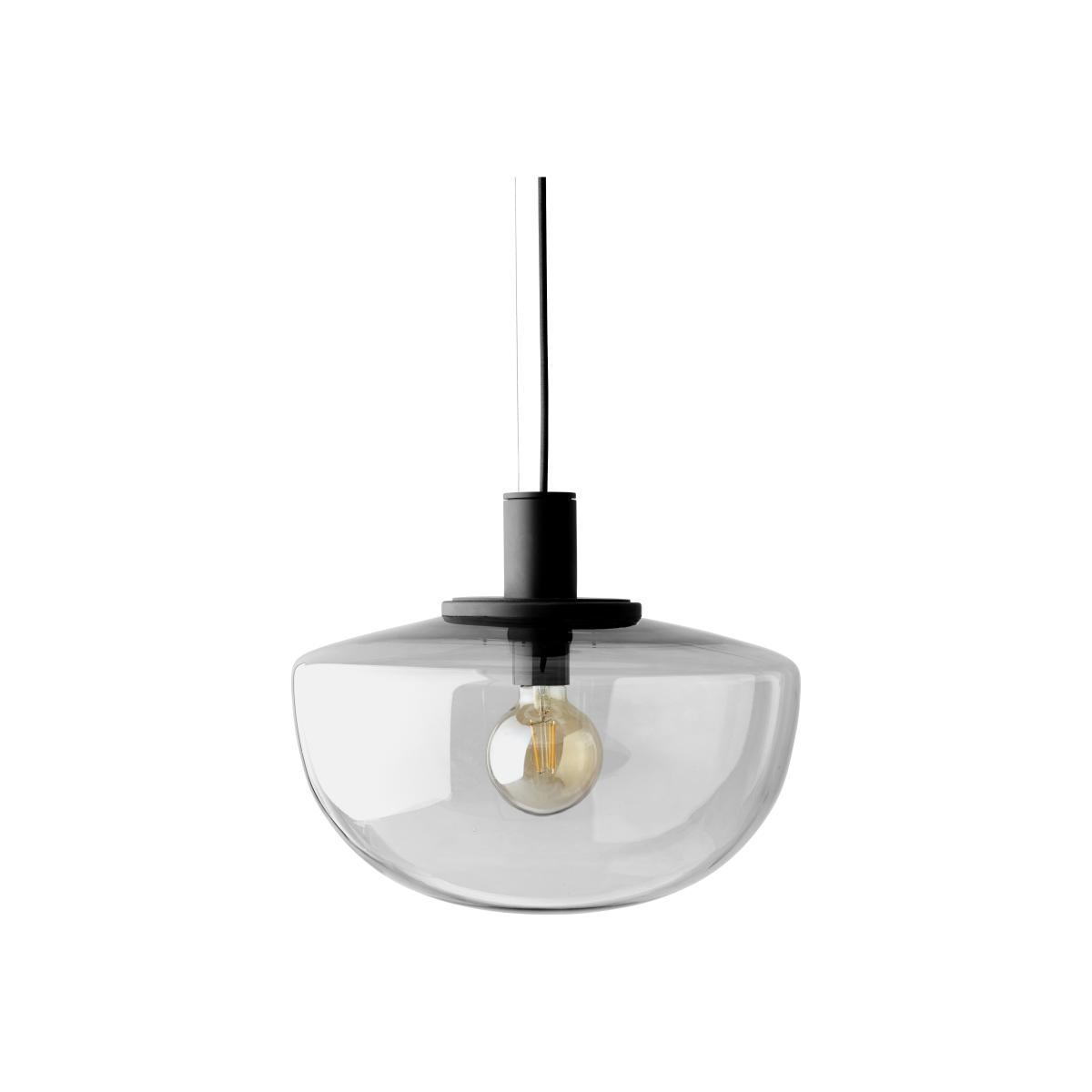 A mix of retro charm and contemporary design, this semi-circular pendant is made of hand-blown glass. The structure above the lampshade is black lacquered aluminium. The Bank pendant offers a beautiful combination of noble materials. The delicacy of the glass lampshade, light as a bubble, is counterbalanced by the solid look of the metal. The choice of quality materials and elaborate shape of the lampshade give this pendant a sophisticated, timeless feel. Smoked glass smoothly diffuses 360-degree light, creating lighting that’s both functional and warm.