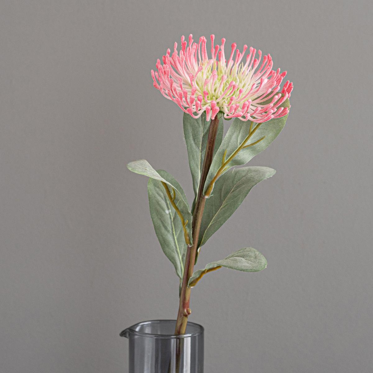I love this Banksia pink stem for adding a pop of colour and a touch of naturalistic charm to various interiors. Its vibrant pink hue works particularly well in modern, minimalist spaces to create focal points, but it can also soften more neutral or rustic settings. Practical styling tips include grouping it with other faux botanicals for a lush arrangement or placing it in a sleek glass vase on a coffee table or shelf for an instant uplift. Because it's artificial, it’s low-maintenance and remains perfect year-round, making it an ideal choice for high-traffic or sunlit areas where fresh flowers might not last long.
