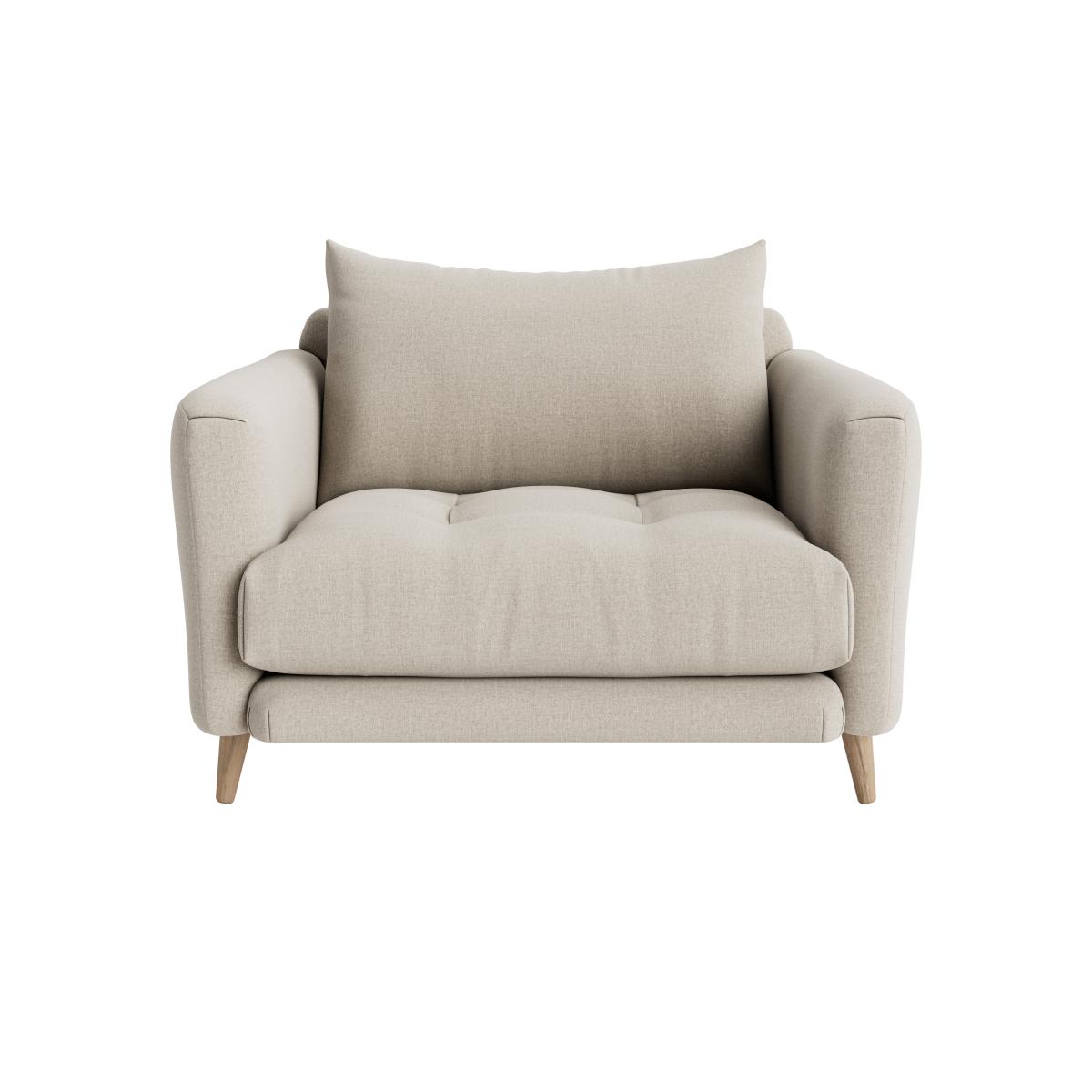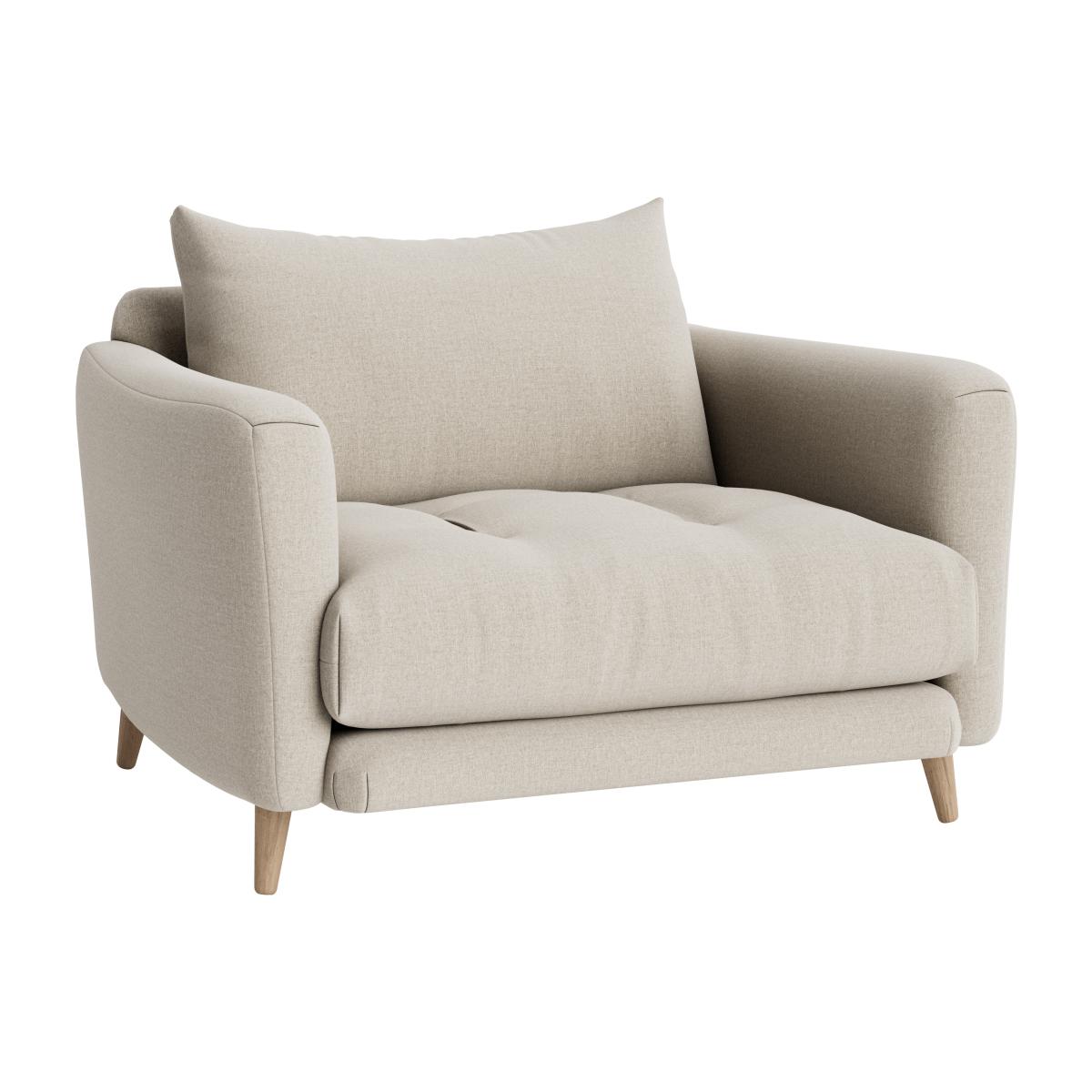 With "blind" buttons on the seat instead of the back, this love seat is our squishy twist on quite a classic design. Dig in.