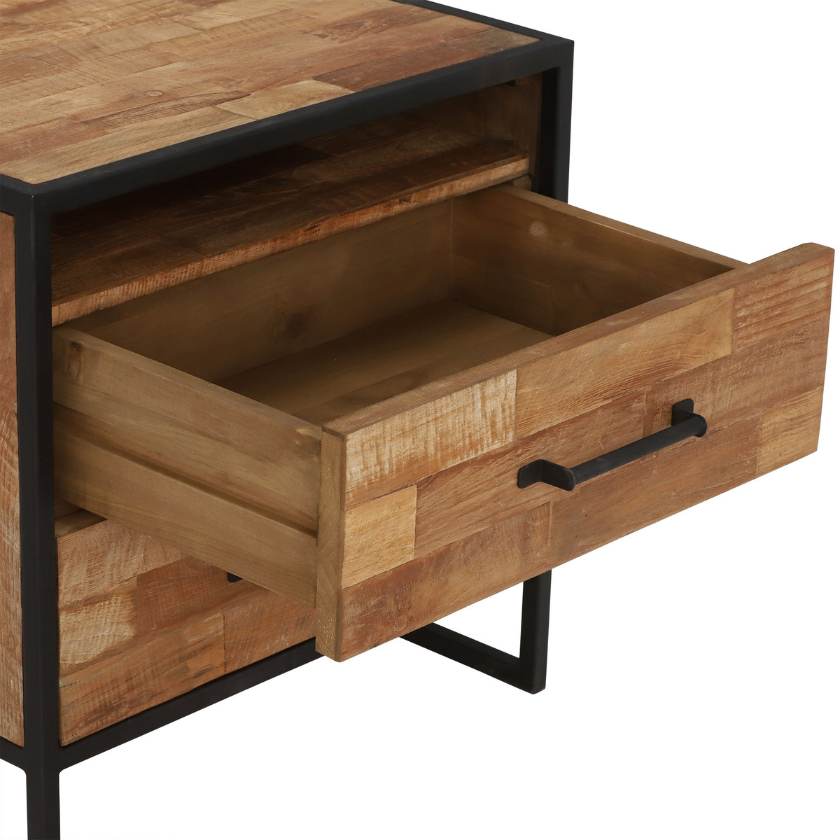 I love this little side table for its sleek combination of natural wood and black framing, which makes it adaptable across a range of interiors. It works particularly well in contemporary, Scandinavian, or industrial spaces, where its minimalist design can be a subtle statement piece. Practical styling tips include layering with a simple table lamp, a small plant, or a favourite book to keep bedside essentials within easy reach. Its compact size also makes it ideal for smaller bedrooms or where you want to maximise space without sacrificing style, while the drawers provide useful storage to keep clutter at bay.