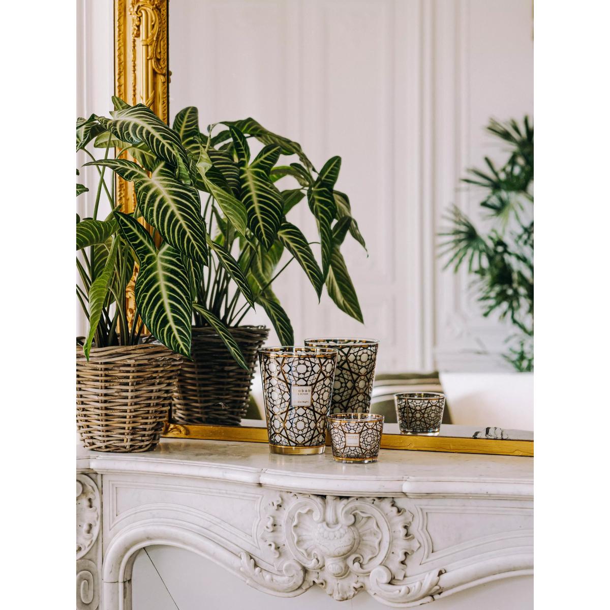 The Arabian Nights scented candle takes us to the mysterious world of the Middle East. With glass screen-printed with 24-carat gold, it draws its inspiration from the famous moucharabieh, open work motifs found in Arab architecture. Through the glass, the flame appears as it creates an enveloping shadow.