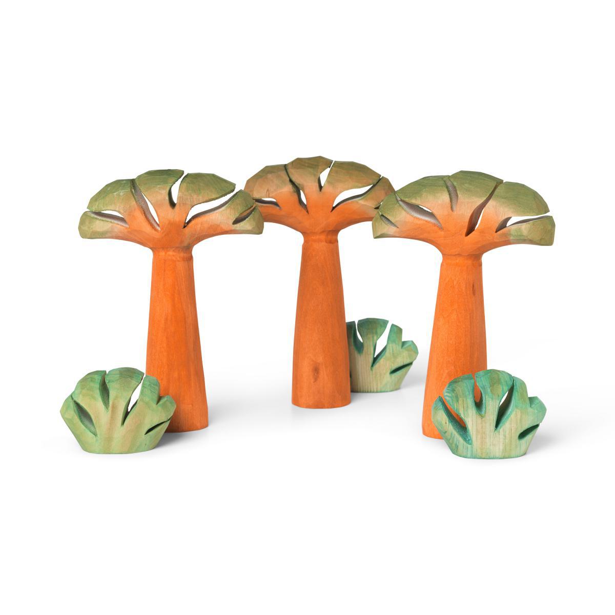 Let your young explorers answer the call of the wild with these charming hand-carved and painted wooden toys. Real springboards for their imagination, baobabs and savannah bushes form a safari backdrop in which they can play with their figurines. Simply placed on a piece of furniture, these ultra-decorative figurines are a wild and wonderful addition to a child’s room. As each piece is hand-sculpted and painted, small variations may occur.