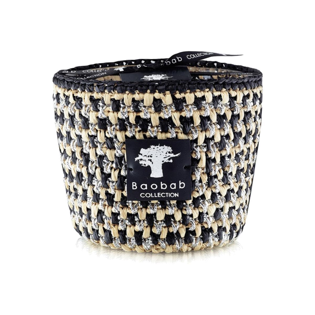 The Marina scented candle is made from crocheted black and natural raffia blended with silver lurex threads, a precious addition to a raw material. Marina means “truth” in Malagasy, and it is with this same truth that the Marina scented candle will align itself with your interiors. The weaving pattern used resembles large knitwear with a sophisticated shine.
