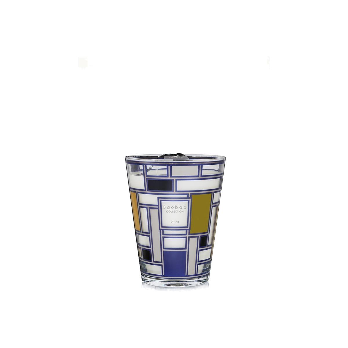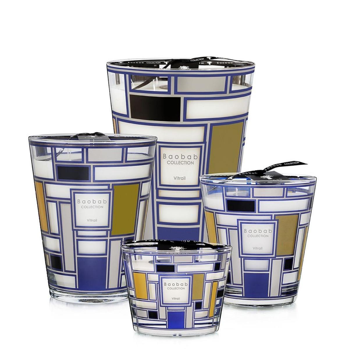 The Vitrail Silver scented candle is decorated with a geometric motif that references the work of artist Piet Mondrian. Its flame shines into the transparency of hand-blown glass and lights up blue, black, and silver squares. Its perfume of anise, musk and amber will spread into your interiors, an invitation to embark on a spiritual journey.