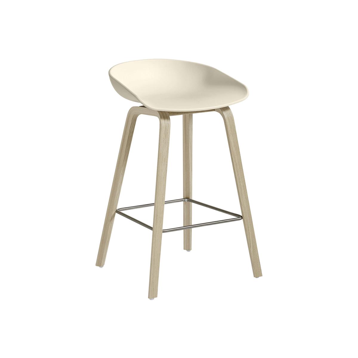About a Stool perfectly illustrates Hay's work: understated lines, a universal, timeless style that stands the test of time while remaining elegant. Its simple appearance lets it blend harmoniously into our daily lives without upsetting our visual environment. You can also imagine it around a bar or high bar in a living room as much as in a public place. Its welcoming, ergonomic shapes ensure optimal comfort. Resolutely focused on the future of furniture, the famous ''About a Chair'' collection is centred on the use of environmentally friendly materials. The shells are made from 100% recycled polypropylene, sourced from post-consumer waste. The oak used for the legs is FSC-certified (from sustainably managed forests) and covered with an ecological water-based varnish.