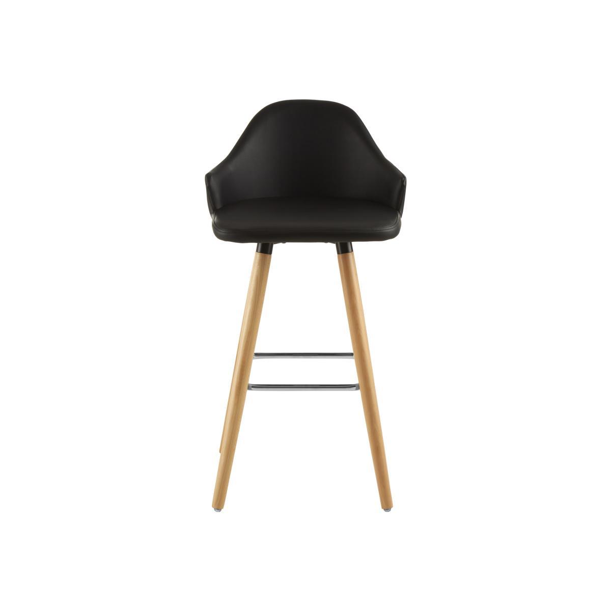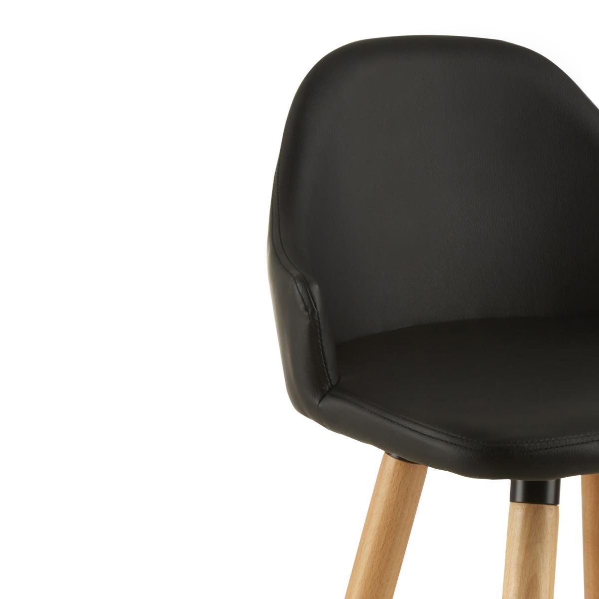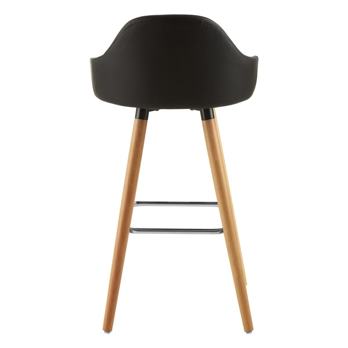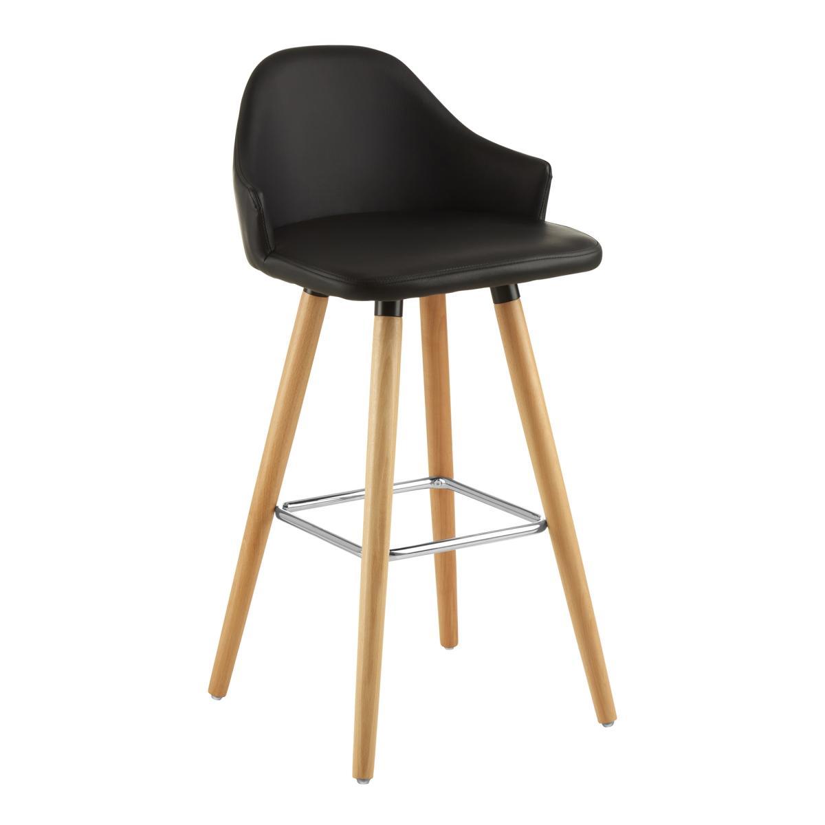 Bar Stool in Black Leather Effect with Beech Wood Legs