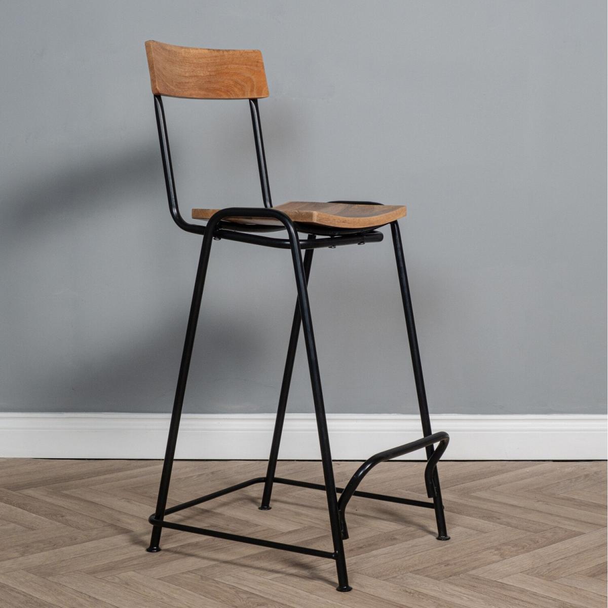The Mango Wood Vintage Railway Bar High Stool from Elm Home And Garden is a perfect blend of elegance, comfort, and durability. Crafted from 100% solid mango wood with no veneer, this stool exudes quality and richness. The natural grains of the mango wood are beautifully exposed, giving each stool a unique character while promising strength and longevity. The stool stands on powdered black steel industrial tube legs that provide robust support and add an element of industrial charm to the stools aesthetic. The variable height ensures adaptability in various spaces, making it a versatile piece for your kitchen or bar.