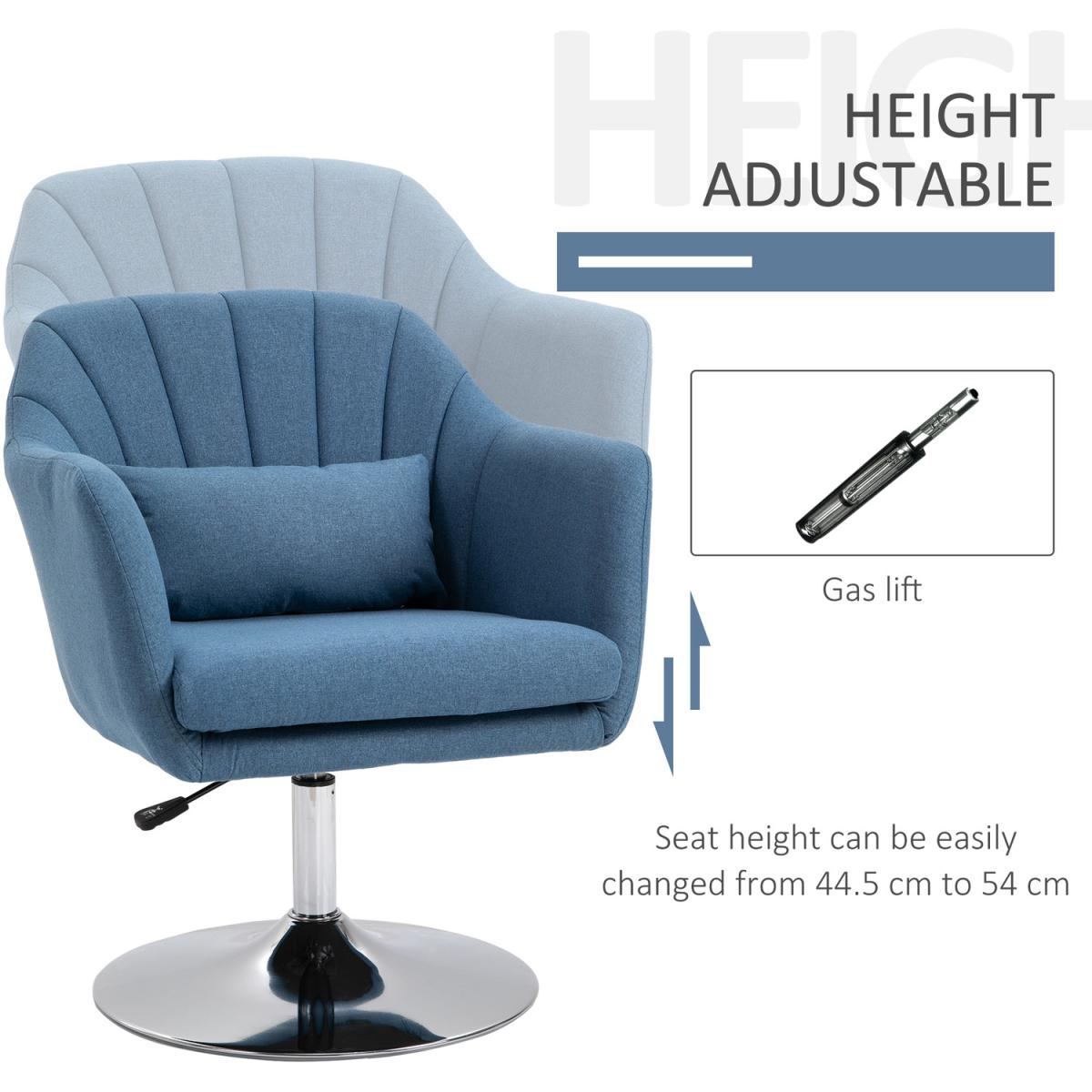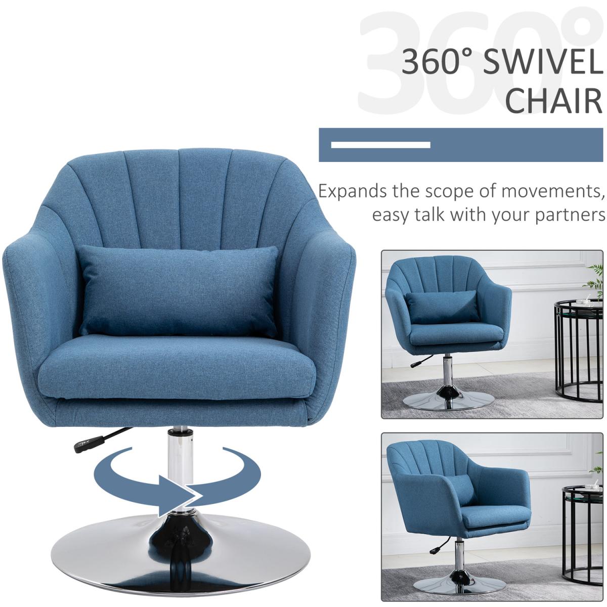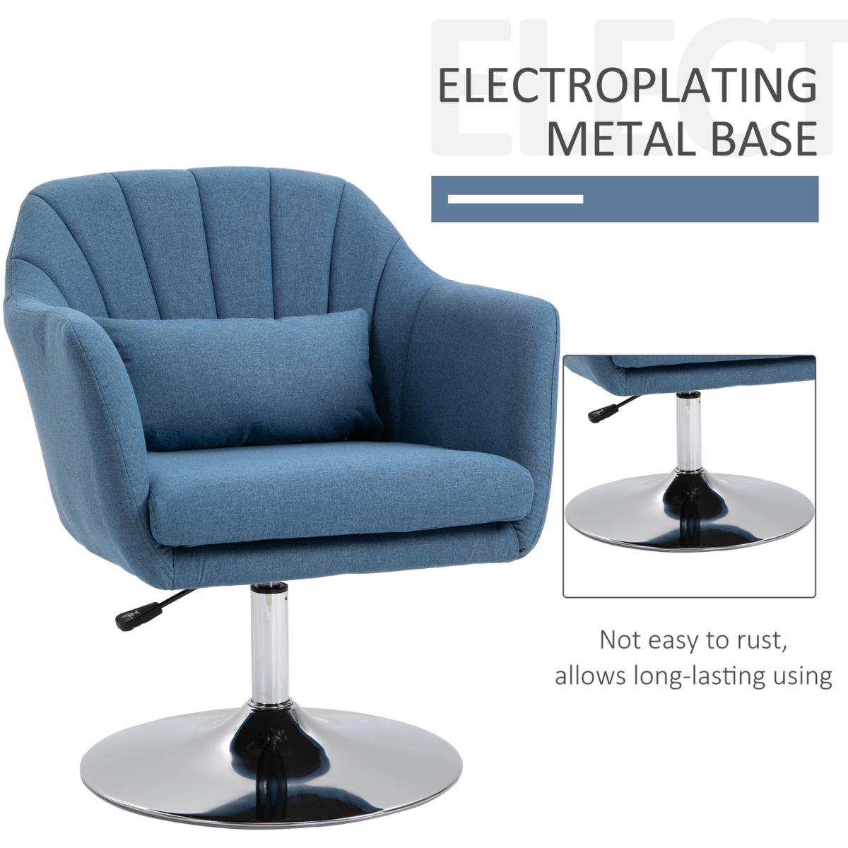 Make those all-important relaxation times at home better than ever before, thanks to this on-trend swivel chair from HOMCOM. The seat is formed into a retro tub design, which provides plenty of room to sit, with a high back and armrests to offer support whilst in use. The whole frame is made from steel, making it very strong and durable for prolonged everyday use, with the large round base ensuring the seat keeps balanced and upright. Filled with a sponge for comfort, it is wrapped in linen for a smooth feel and easy maintenance and comes with a seat cushion and a small back cushion to finish.