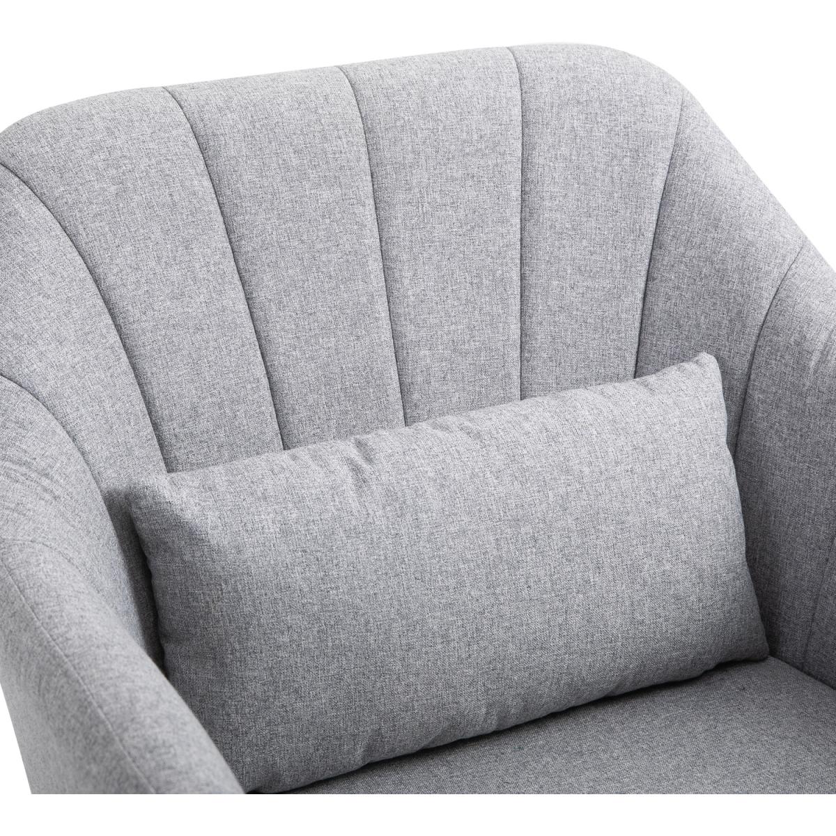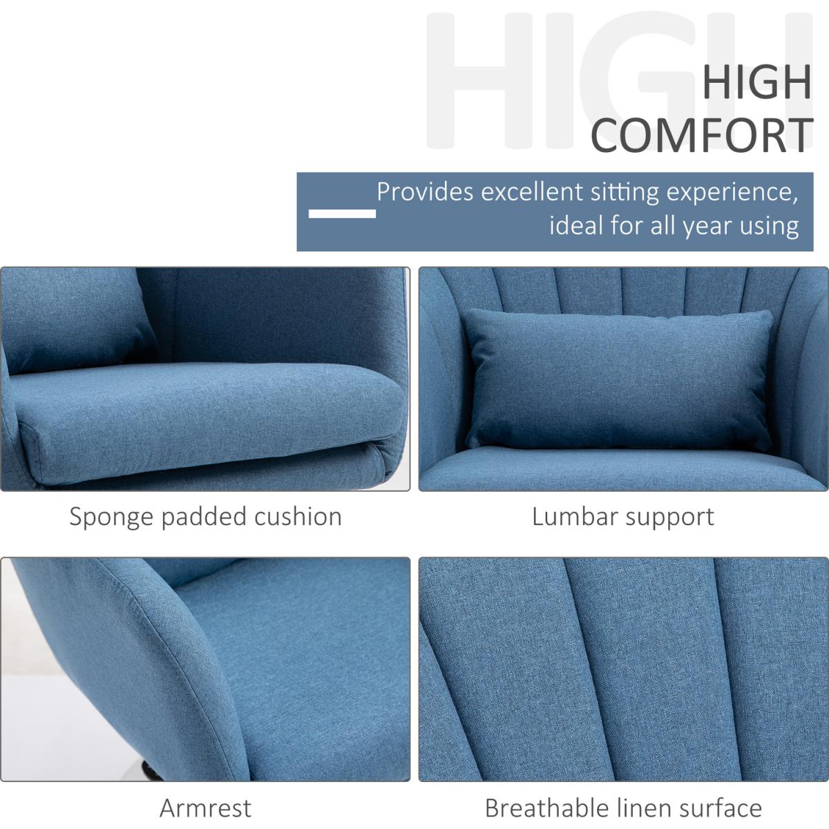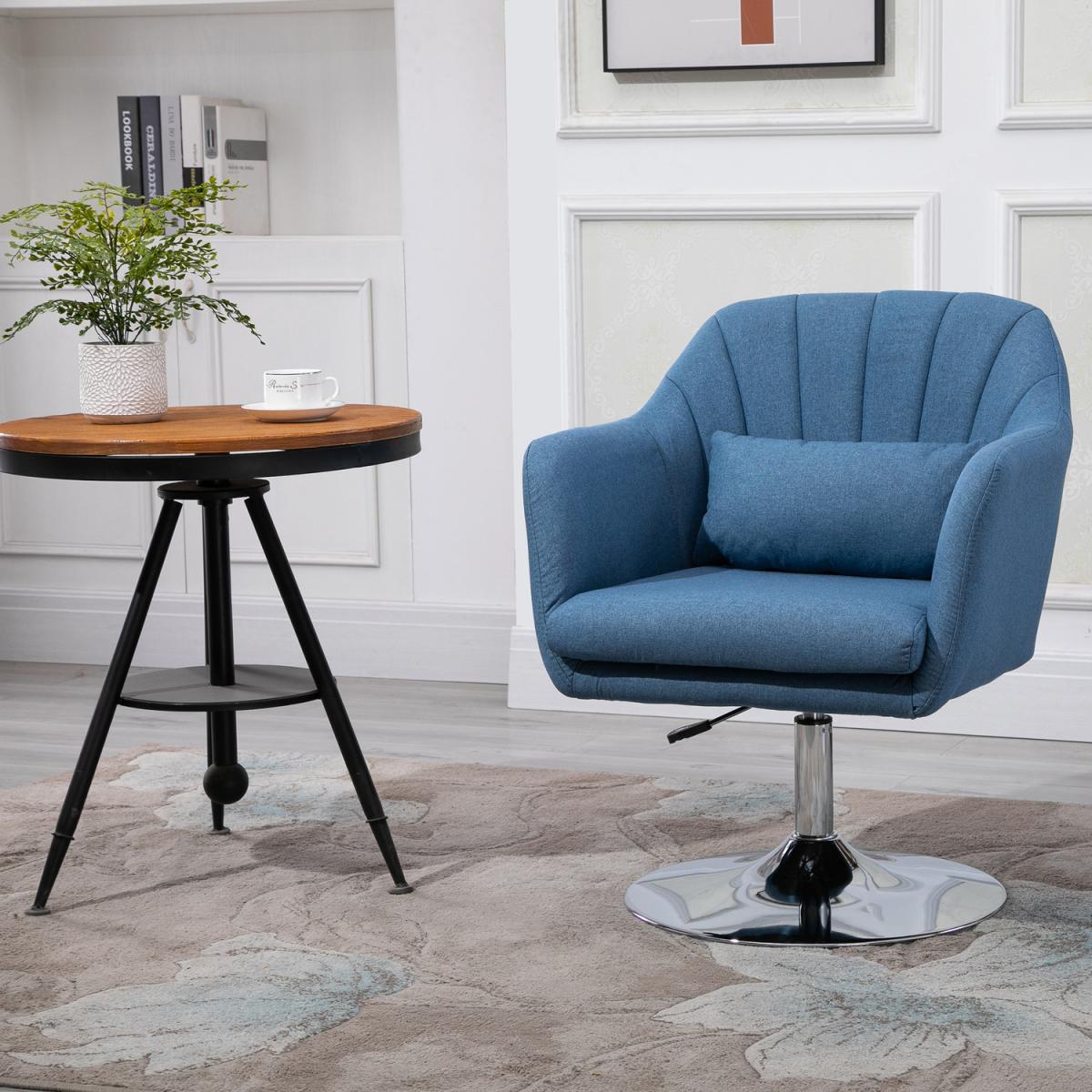 Make those all-important relaxation times at home better than ever before, thanks to this on-trend swivel chair from HOMCOM. The seat is formed into a retro tub design, which provides plenty of room to sit, with a high back and armrests to offer support whilst in use. The whole frame is made from steel, making it very strong and durable for prolonged everyday use, with the large round base ensuring the seat keeps balanced and upright. Filled with a sponge for comfort, it is wrapped in linen for a smooth feel and easy maintenance and comes with a seat cushion and a small back cushion to finish.